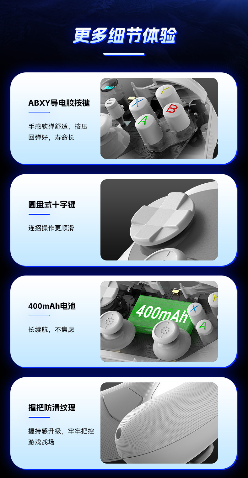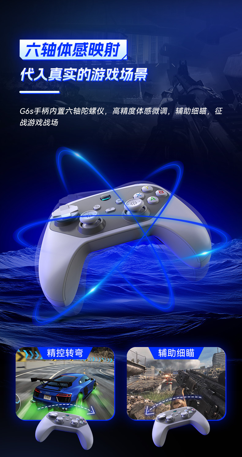 G6S 무선 블루투스 게임 컨트롤러 듀얼 홀 6축 버퍼 매크로 백 키 스위치 안드로이드 IOS 컴퓨터 컨트롤러스토어 가기
