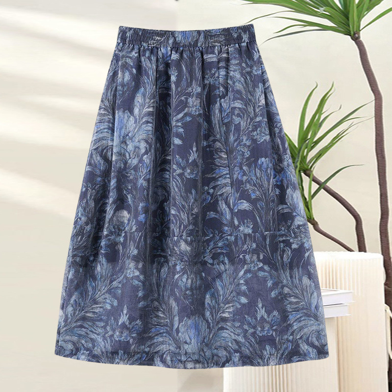 여성을위한 텐셀 린넨 경량 A 라인 프린트 스커트 2025 여름 기질 다용도 얇은 슬리밍 중간 길이 스커트