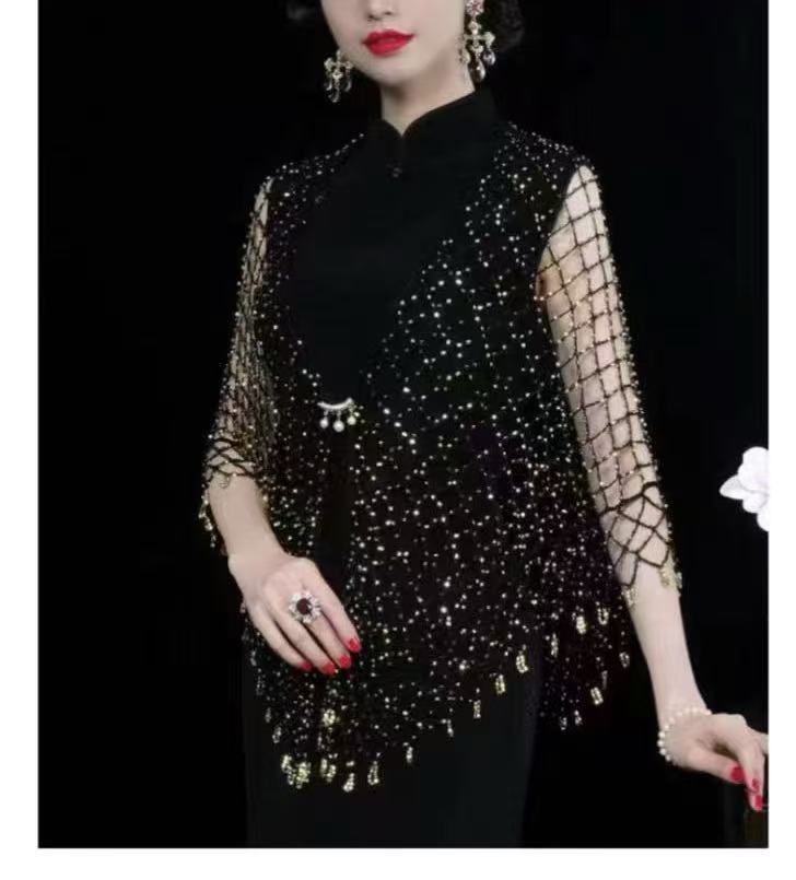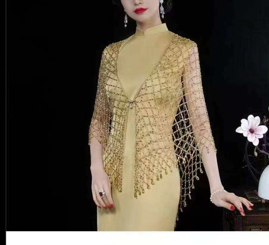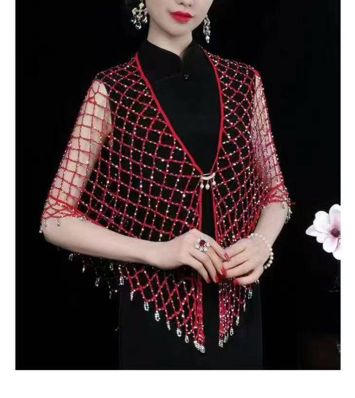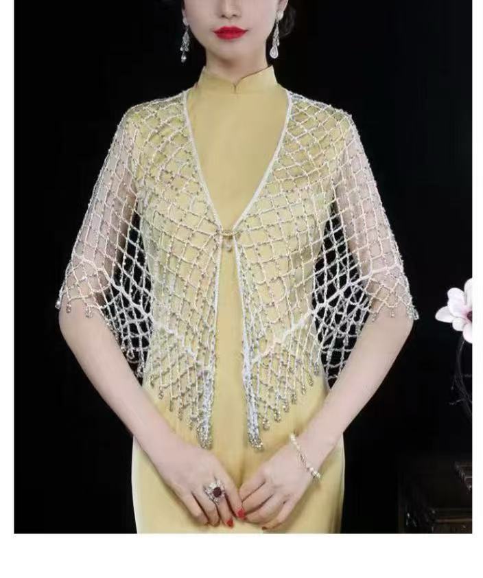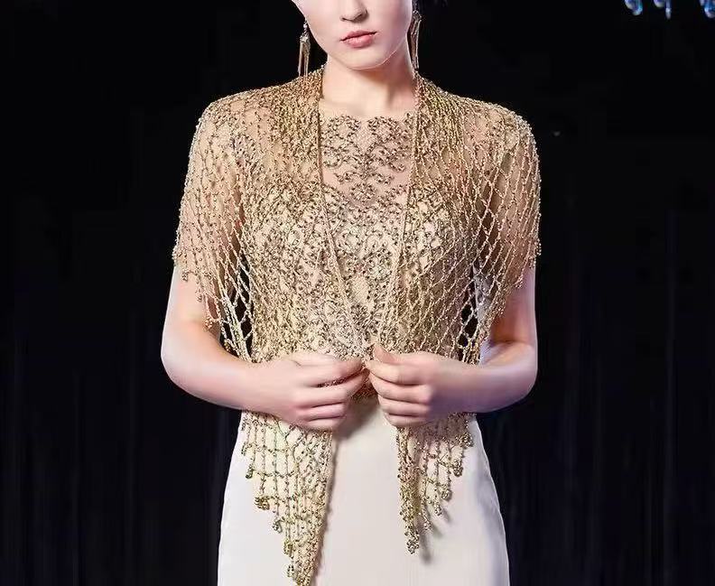 2025년 새로운 크로스보더 핸드훅 비즈 맞춤형 숄 비키니 아우터 섹시한 삼각형 스카프 숄 거즈 비치 커버업스토어 가기