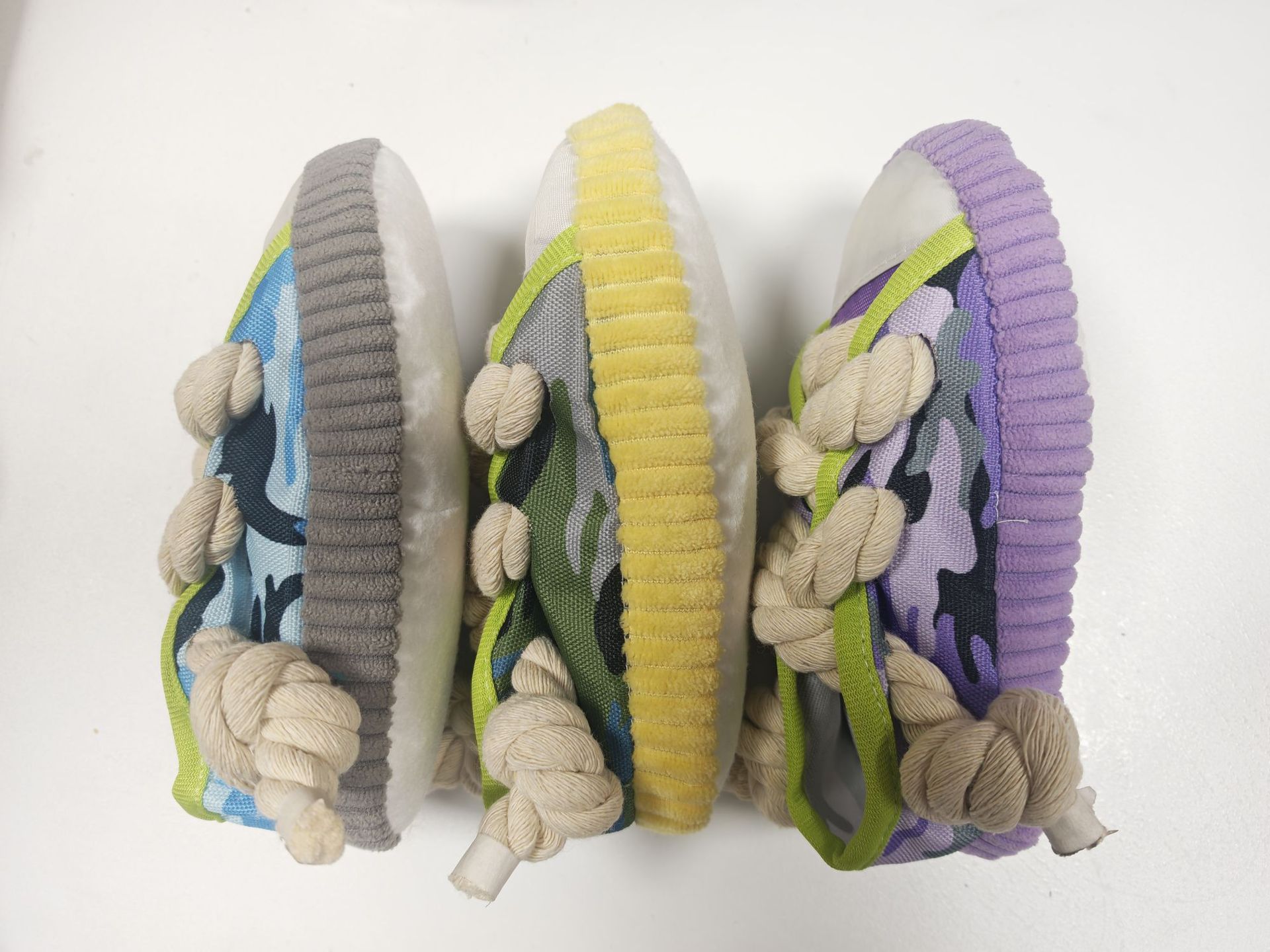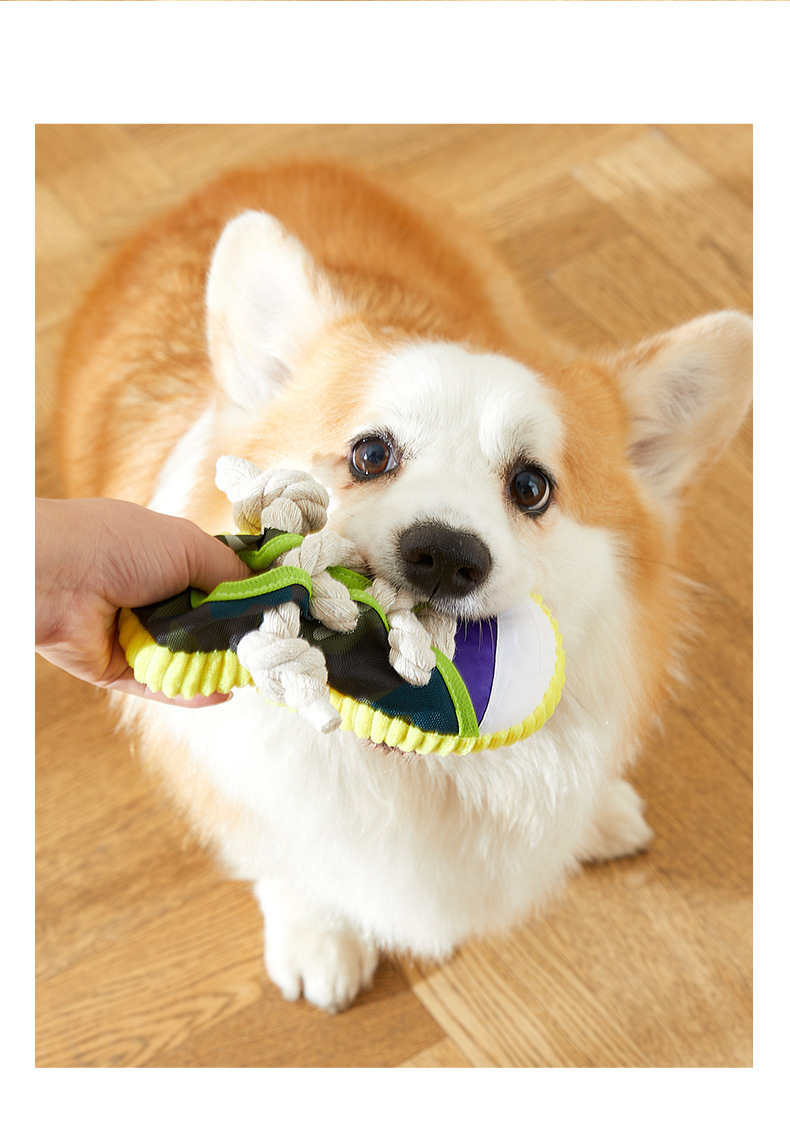 캔디 컬러 위장 애완 동물 면 로프 슬리퍼 개 소리 슬리퍼 장난감 어린이 치아 물어뜯기 방지 지루함 인터랙티브 장난감