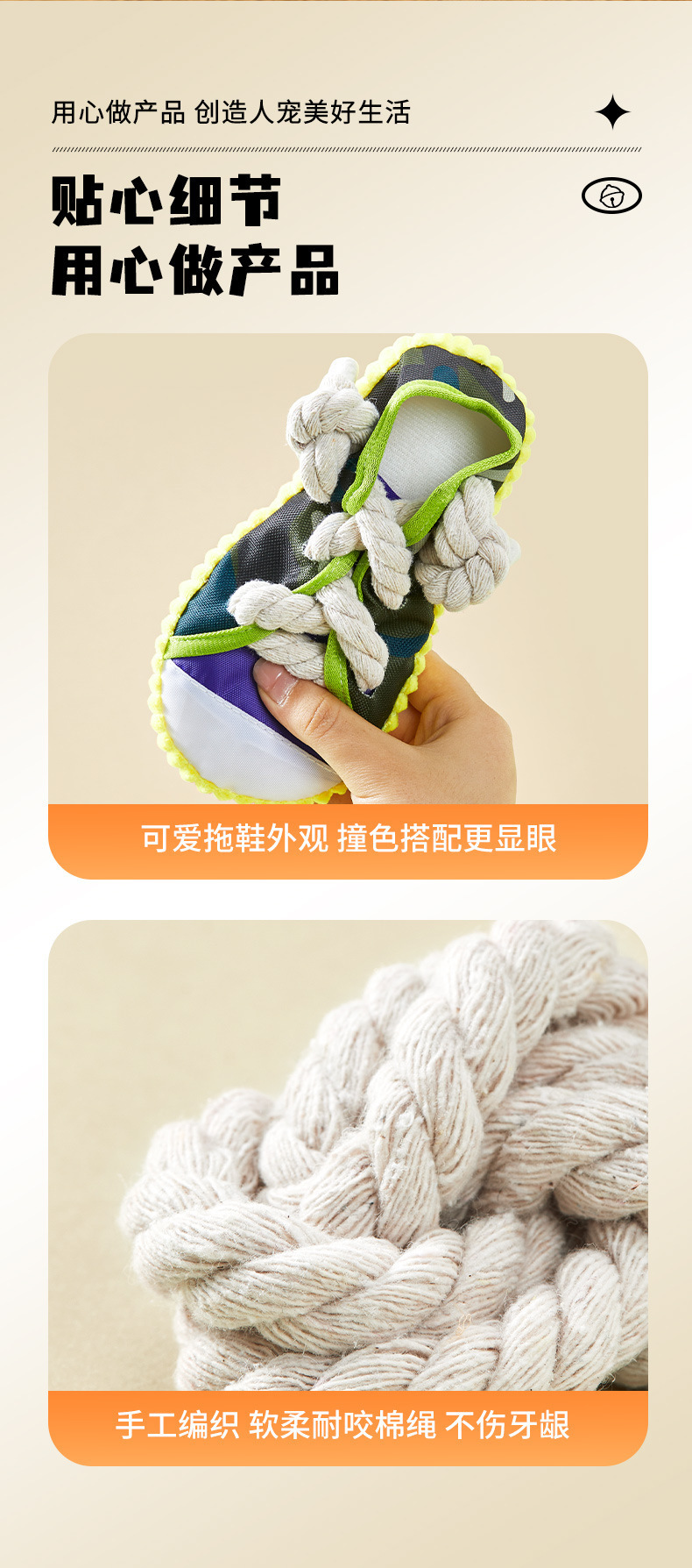 캔디 컬러 위장 애완 동물 면 로프 슬리퍼 개 소리 슬리퍼 장난감 어린이 치아 물어뜯기 방지 지루함 인터랙티브 장난감스토어 가기