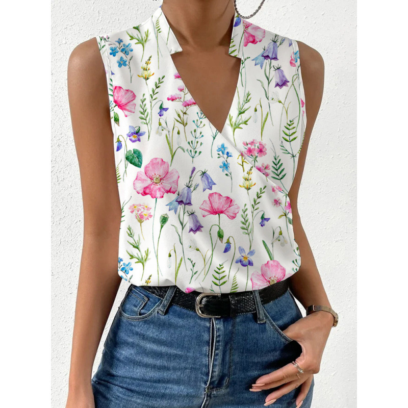 2025년 여름 해외 무역 여성복 쉬폰 셔츠 여성 브이넥 민소매 쉬폰 셔츠