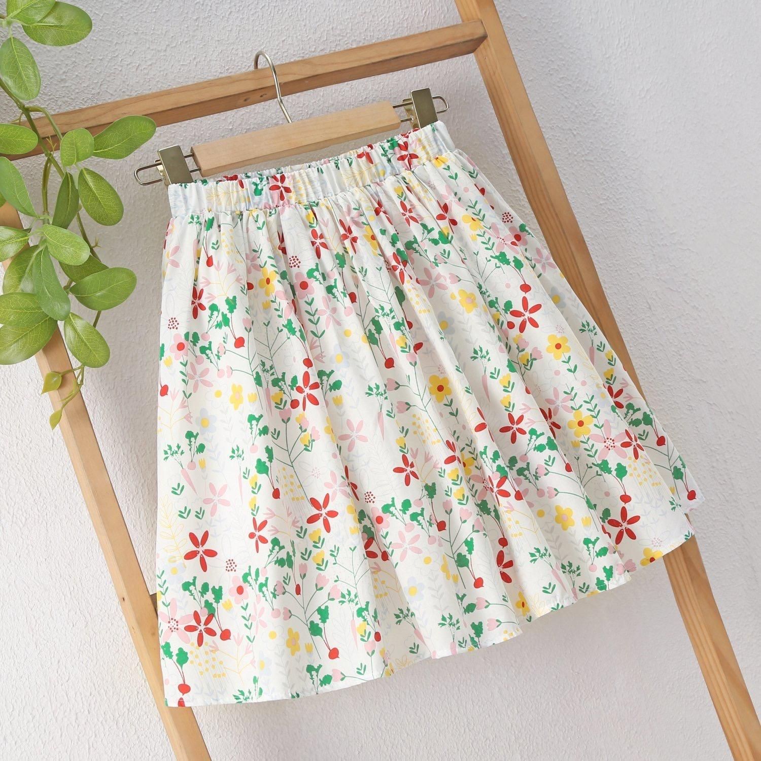 여아 꽃무늬 스커트 여름 신작 여아 A라인 스커트 안감이 있는 여아용 노출 방지 투투 스커트