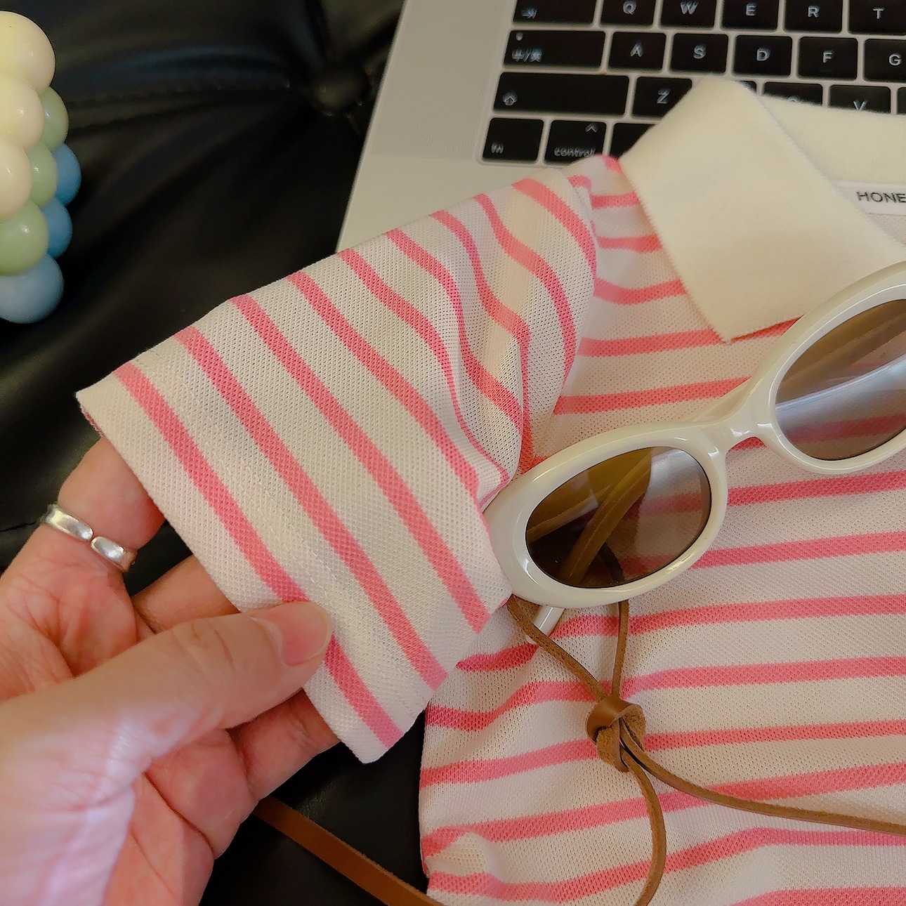 • 아동용 핑크 스트라이프 A라인 스커트