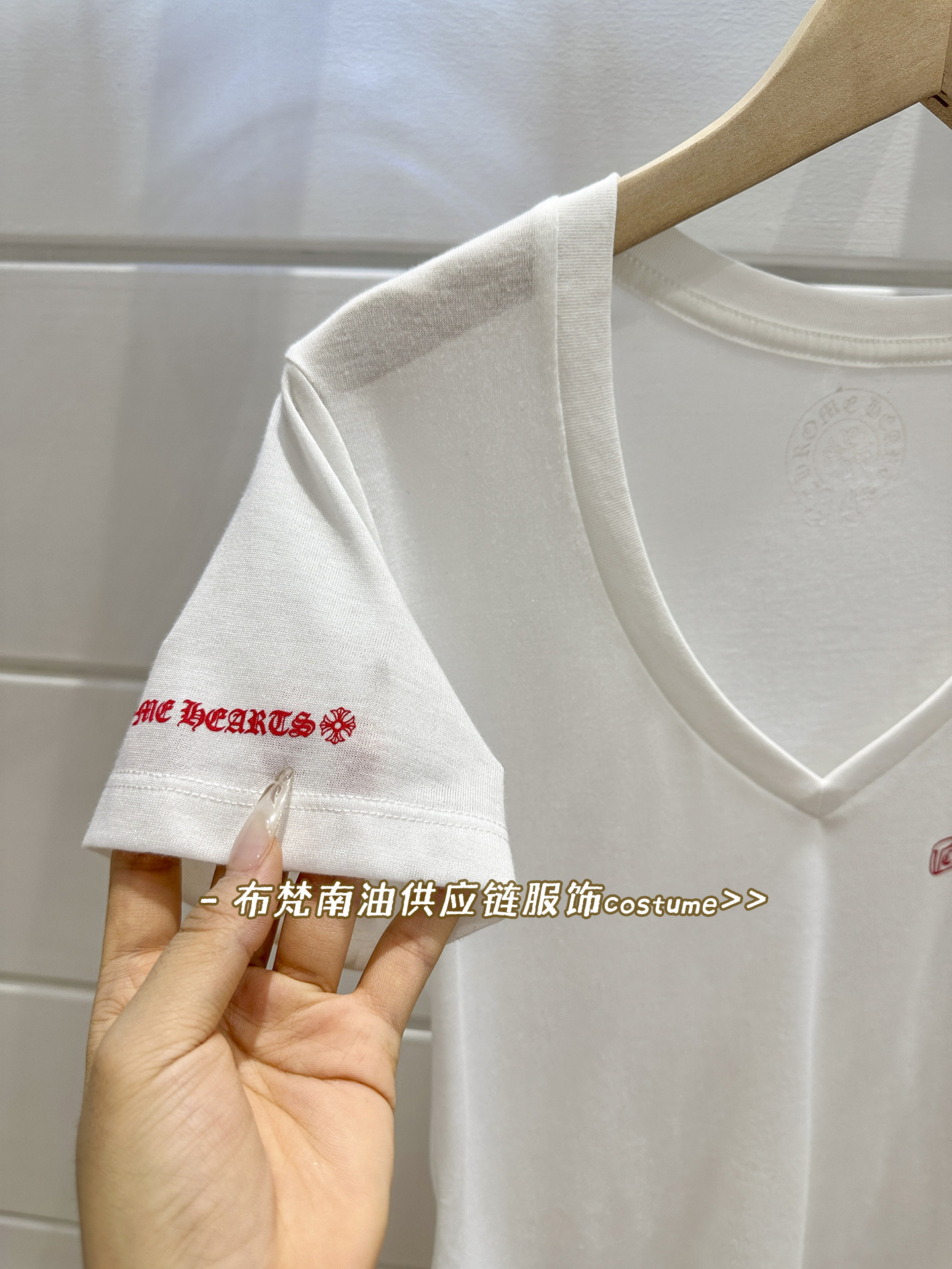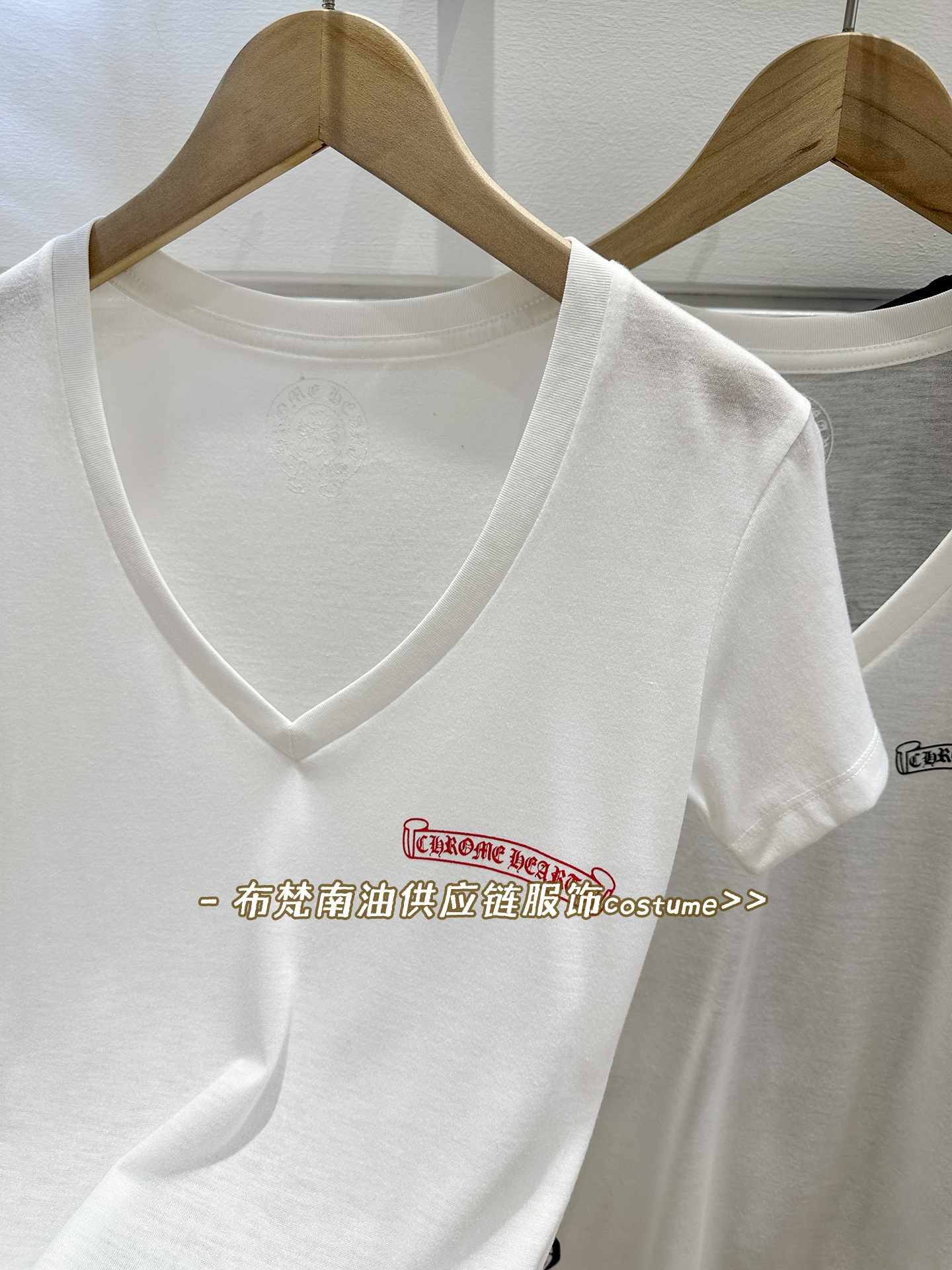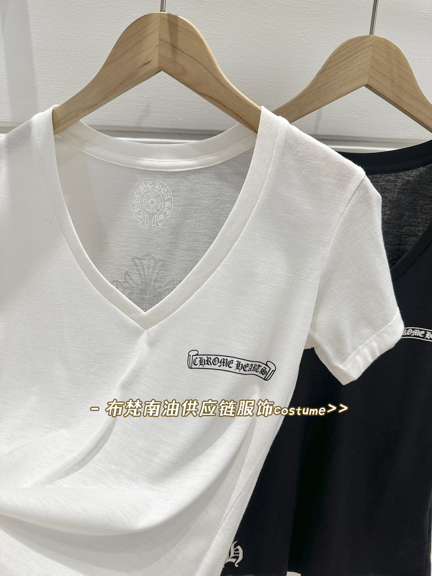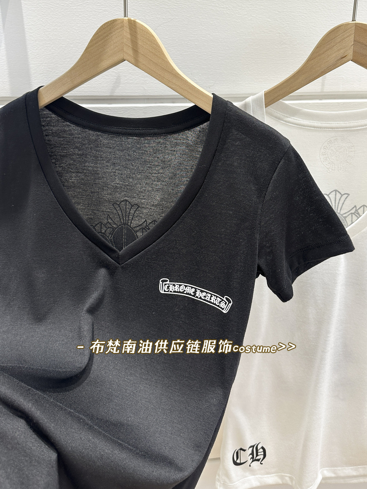 Shenzhen Nanyou Correct Edition CH 산스크리트 크로스 프린트 V 넥 반팔 티셔츠 여성용 25 여름 신작 코튼 탑스토어 가기