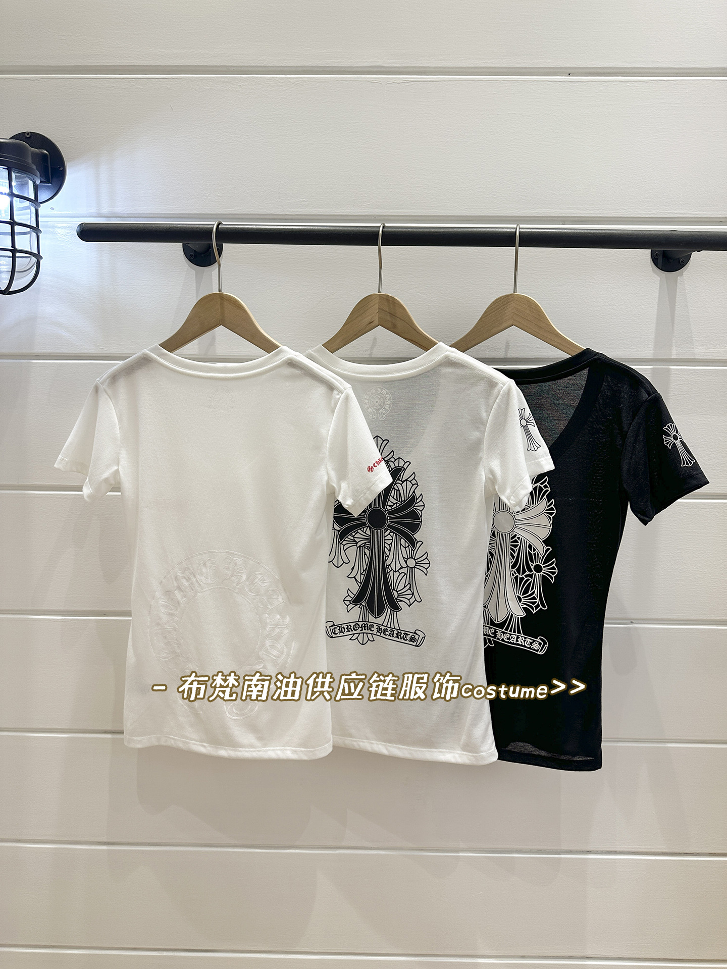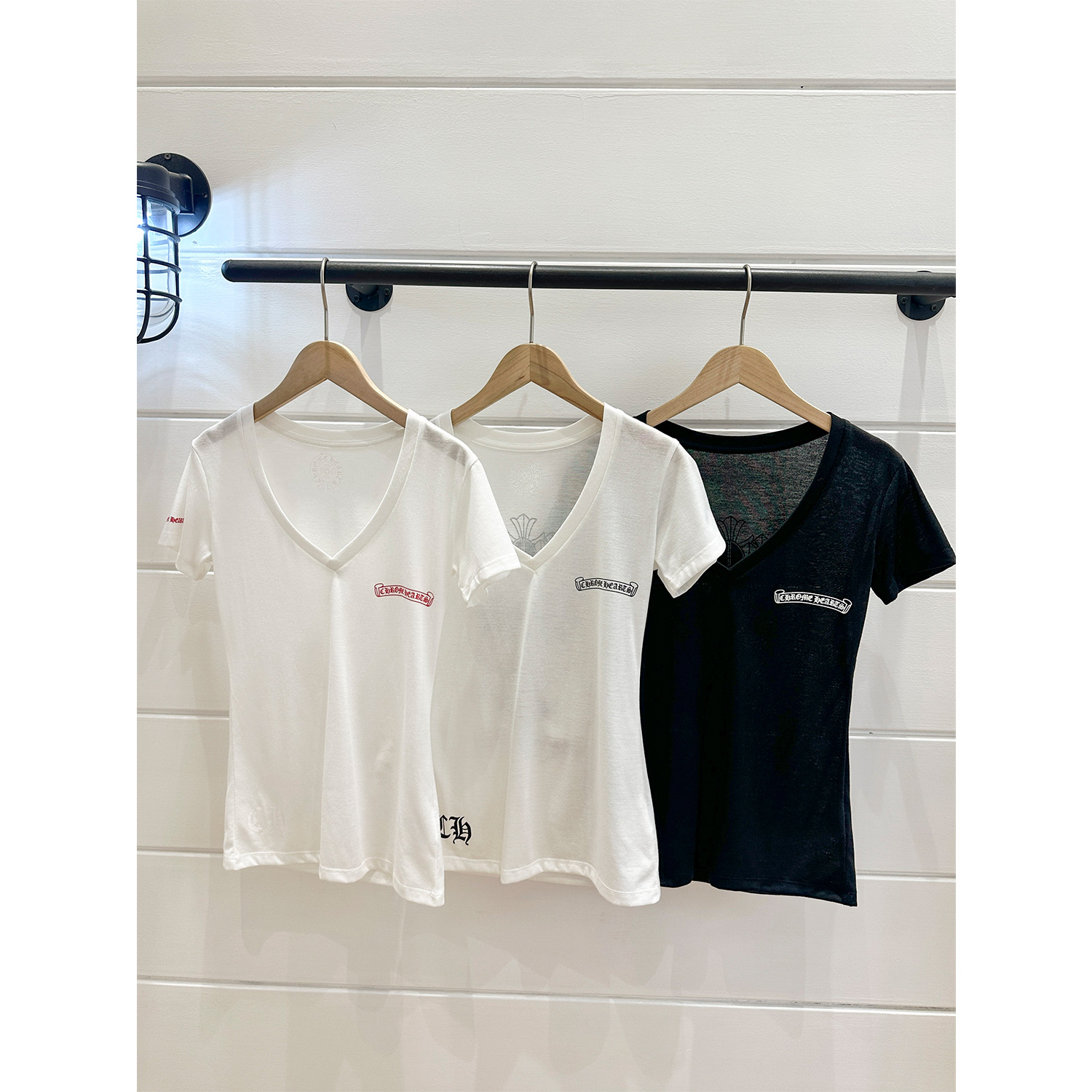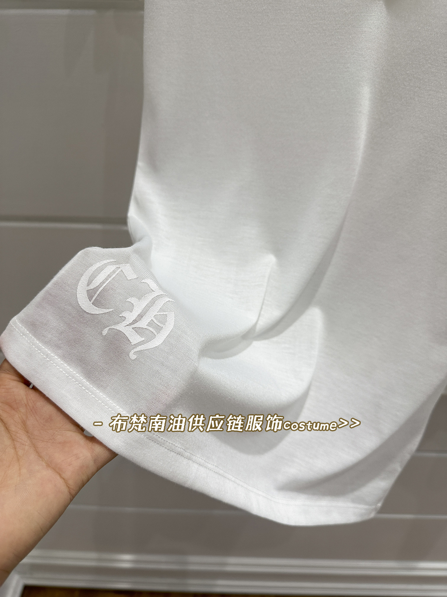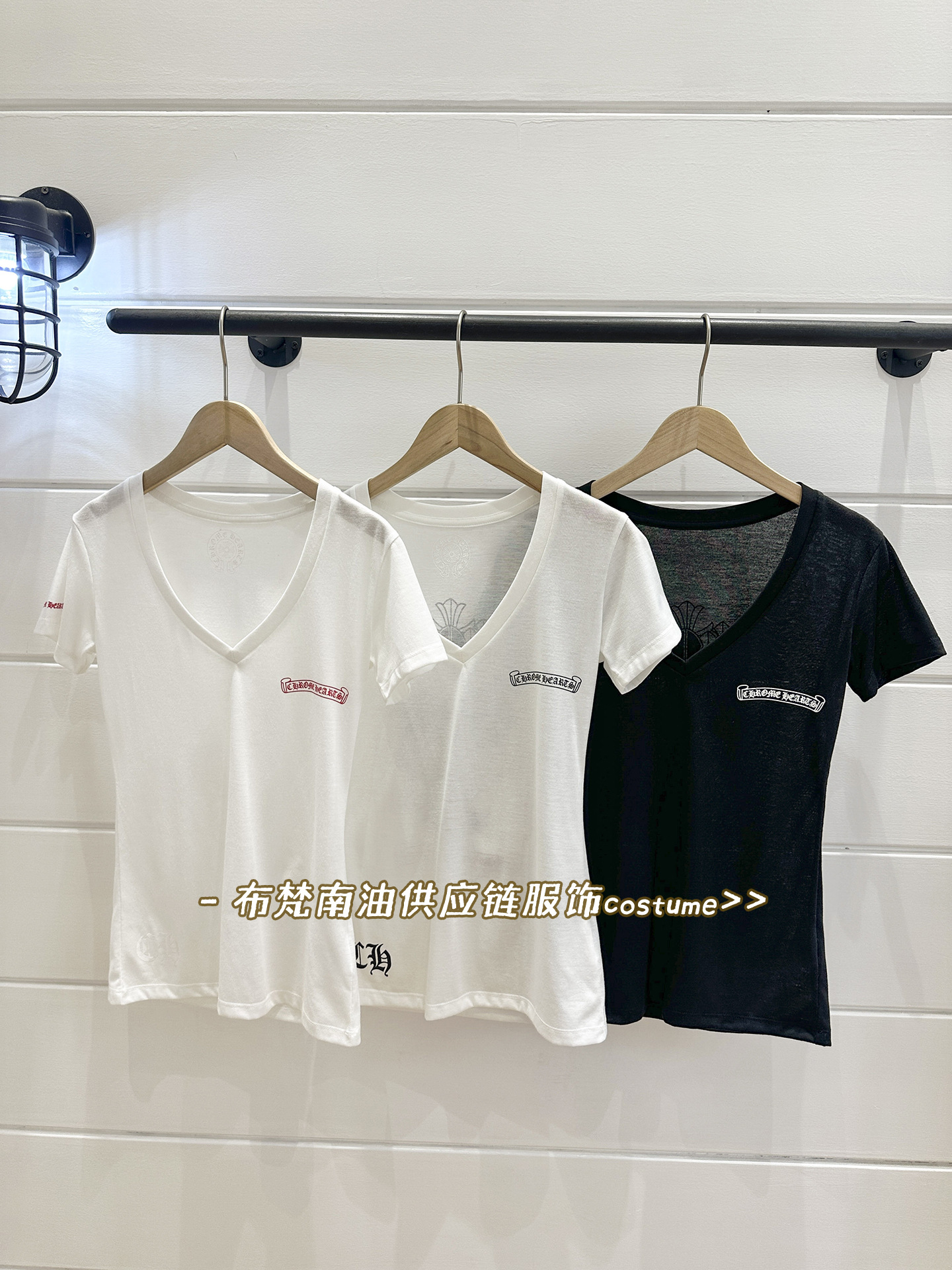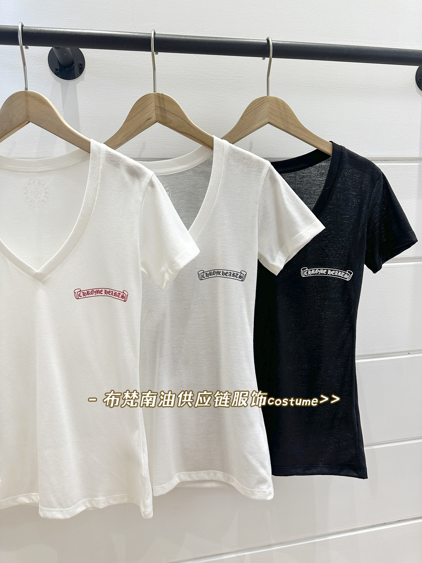 Shenzhen Nanyou Correct Edition CH 산스크리트 크로스 프린트 V 넥 반팔 티셔츠 여성용 25 여름 신작 코튼 탑스토어 가기