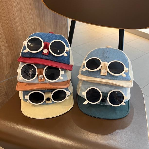 [스트리트 쿨] 베이비 안경 피크 캡 여름 메쉬 소프트 챙 자외선 차단 모자 소년 소녀용 오목 모양 야구 모자스토어 가기
