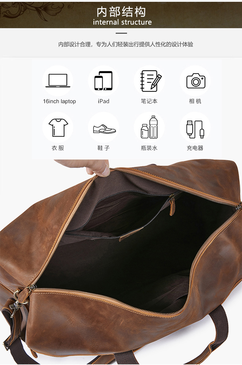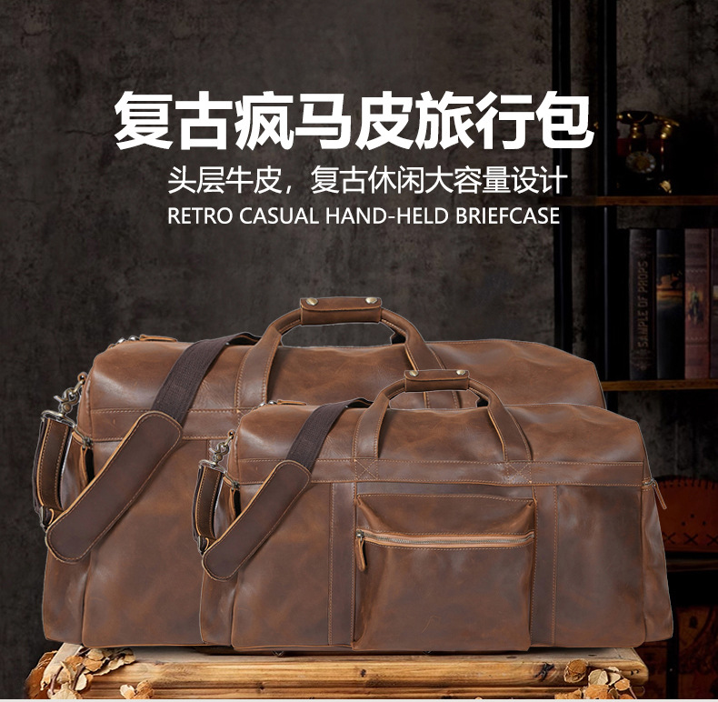 유럽과 미국의 복고풍 남성 미친 말 가죽 여행 가방 24inch 남성용 정품 가죽 대형 핸드백 어깨 대각선 수하물 가방스토어 가기