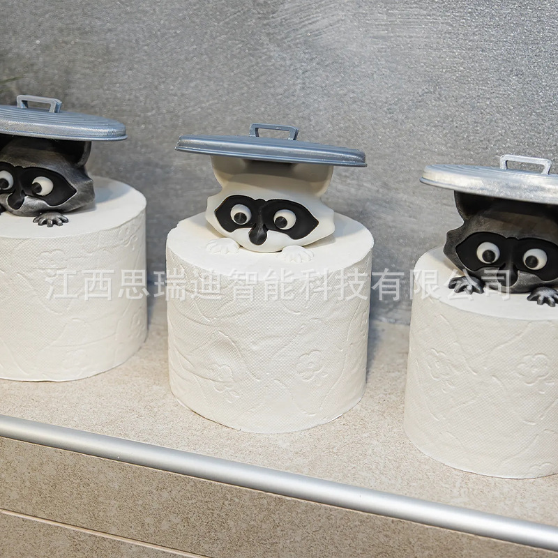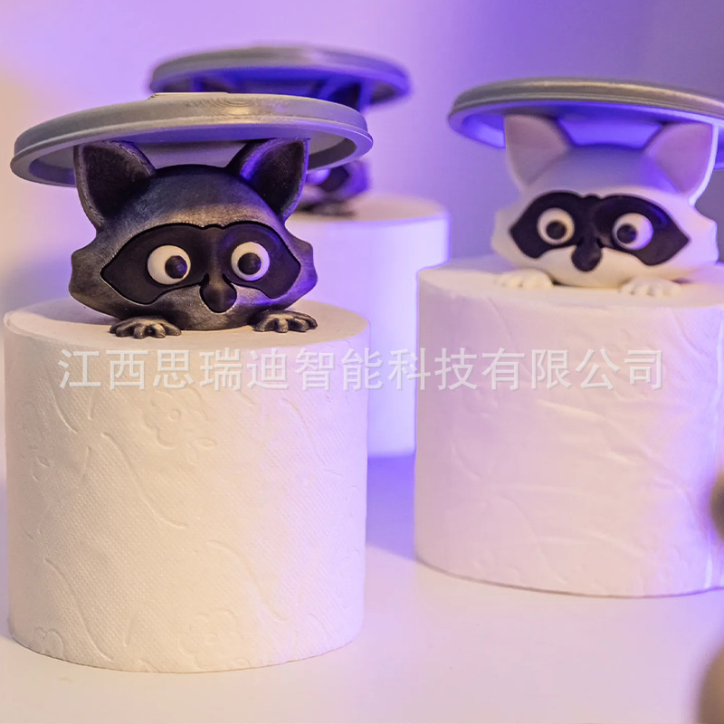 국경 간 신제품 3D 인쇄 너구리 종이 타월 홀더 가정용 장난스러운 장식, 중공 롤 종이 여우 화장지 홀더