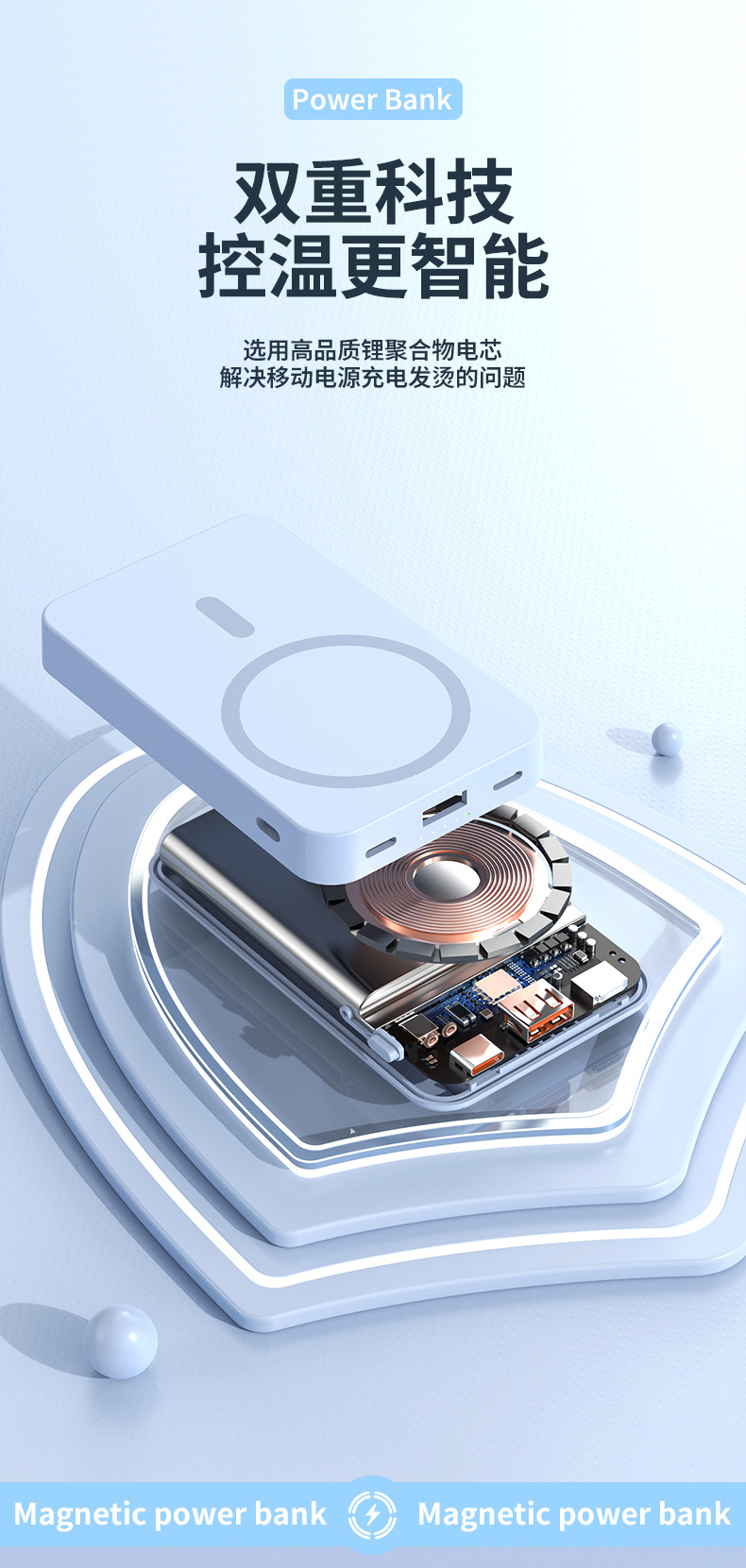국경 간 자기 보조베터리 고속 충전 무선 충전에는 1만 2만 mAh 휴대용 브래킷 모바일 전원 공급 장치가 함께 제공됩니다.스토어 가기