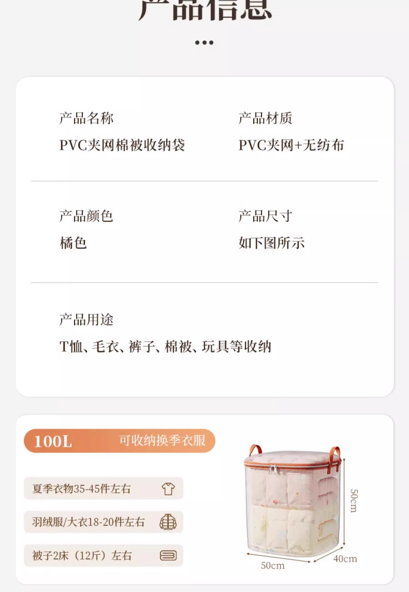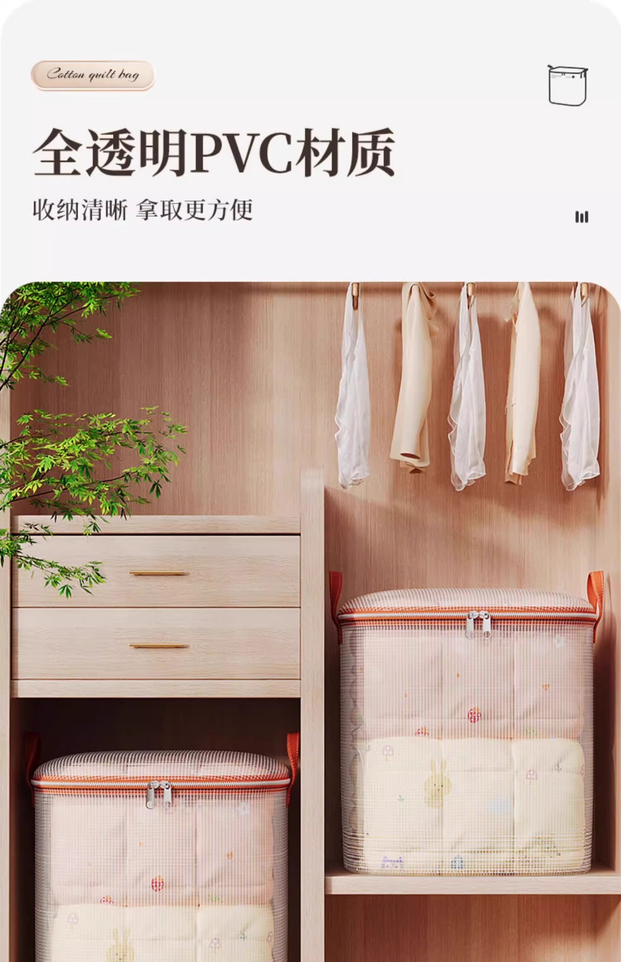 이불 보관 가방 대용량 가정용 이불 의류 보관 상자 PVC 옷장 유물 투명 이동 포장 가방