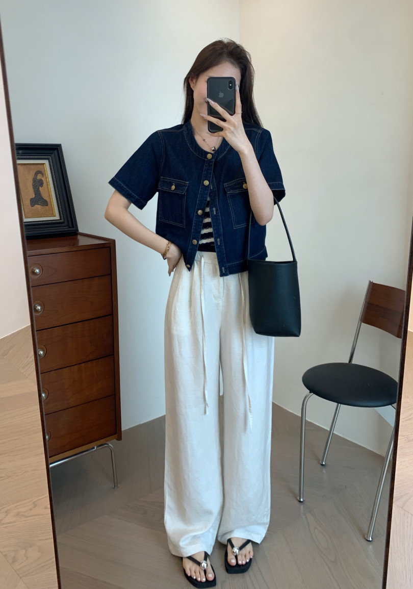맥스 데이크스 ® 데님 블루 데님 반팔 재킷 여성 여름 상쾌한 다목적 캐주얼 탑 핫 스타일 드롭 배송