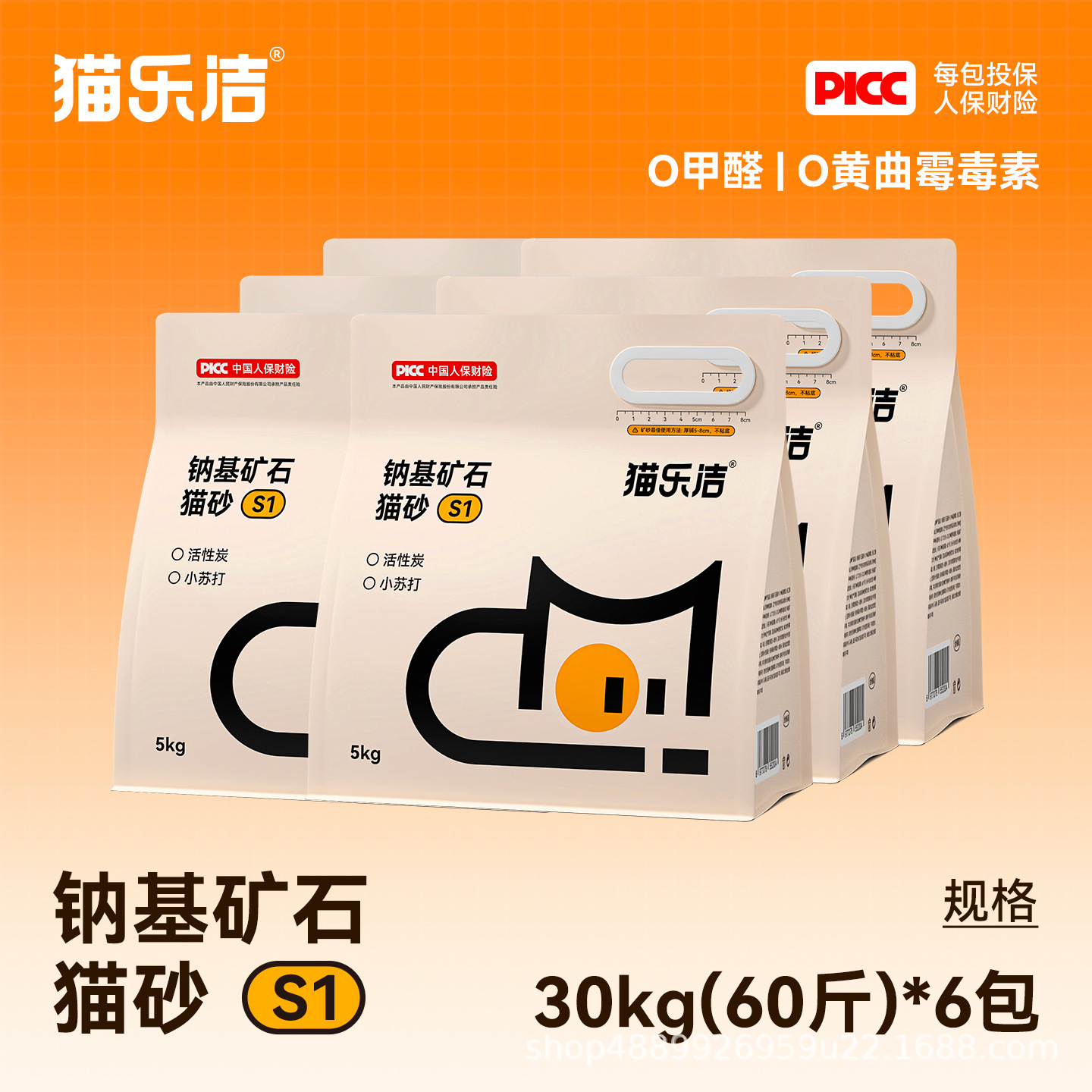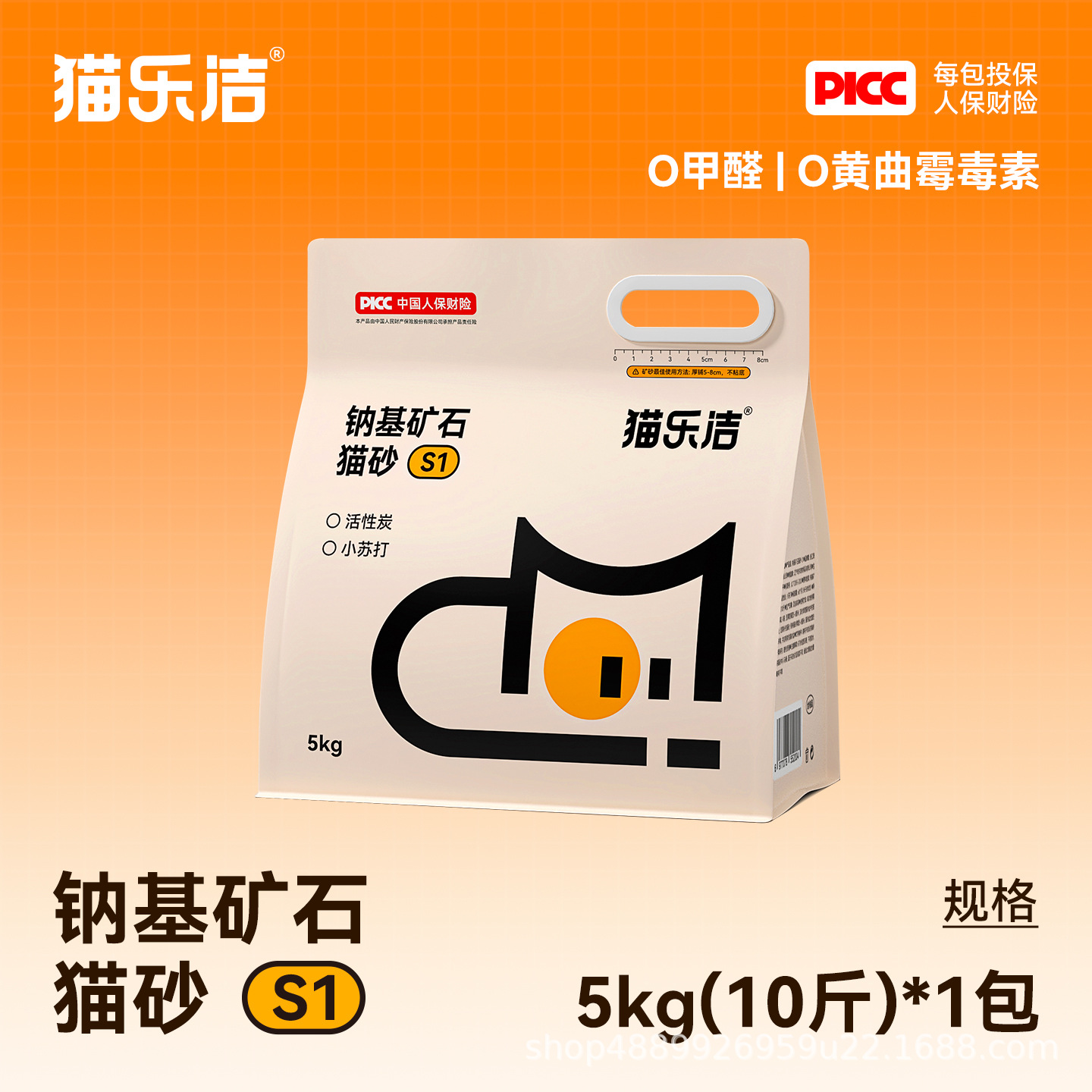 Mao Lejie S1 천연 나트륨 기반 광석 고양이 모래 거의 먼지가 없는 5kg 팩 5kg 활성탄 베이킹 소다스토어 가기