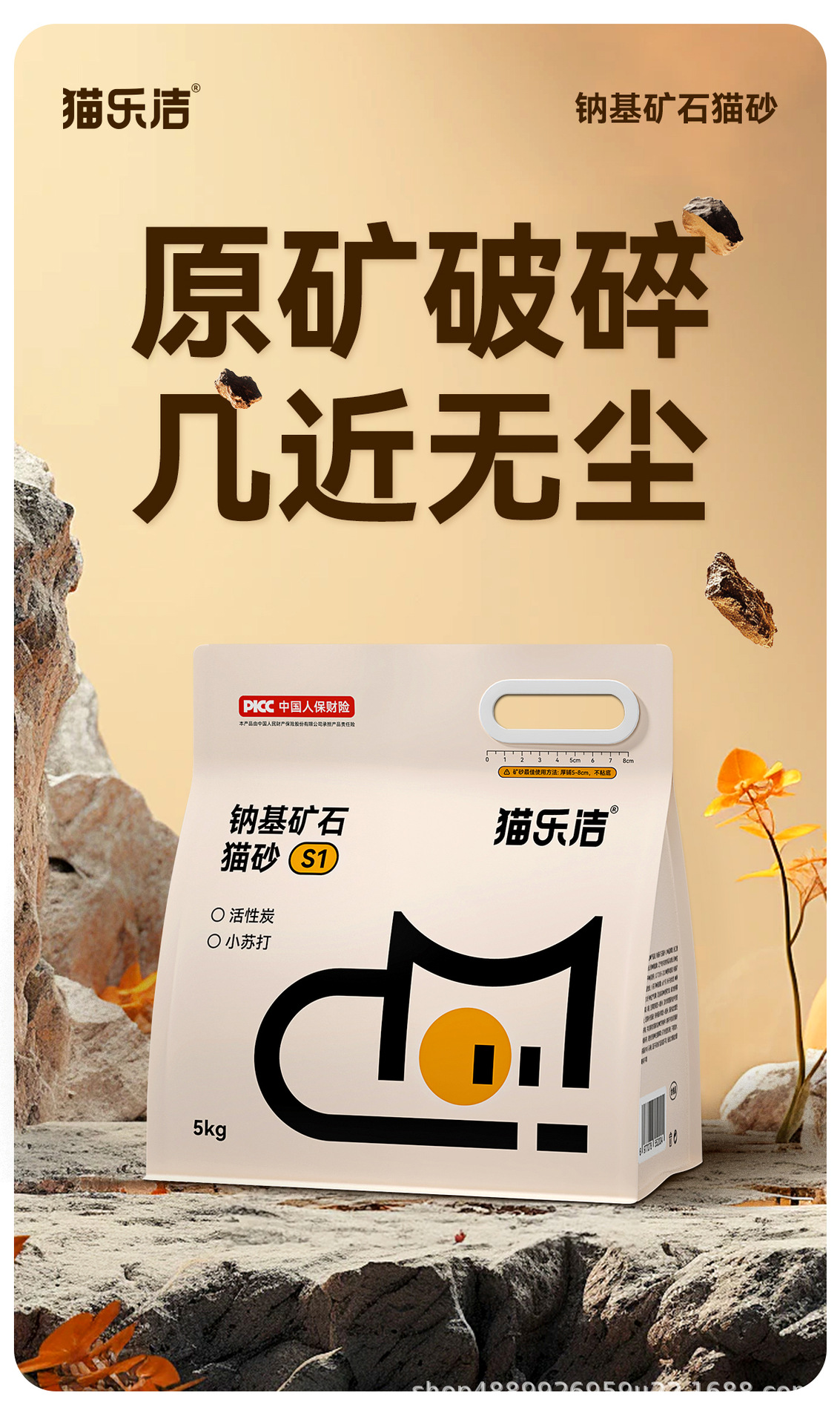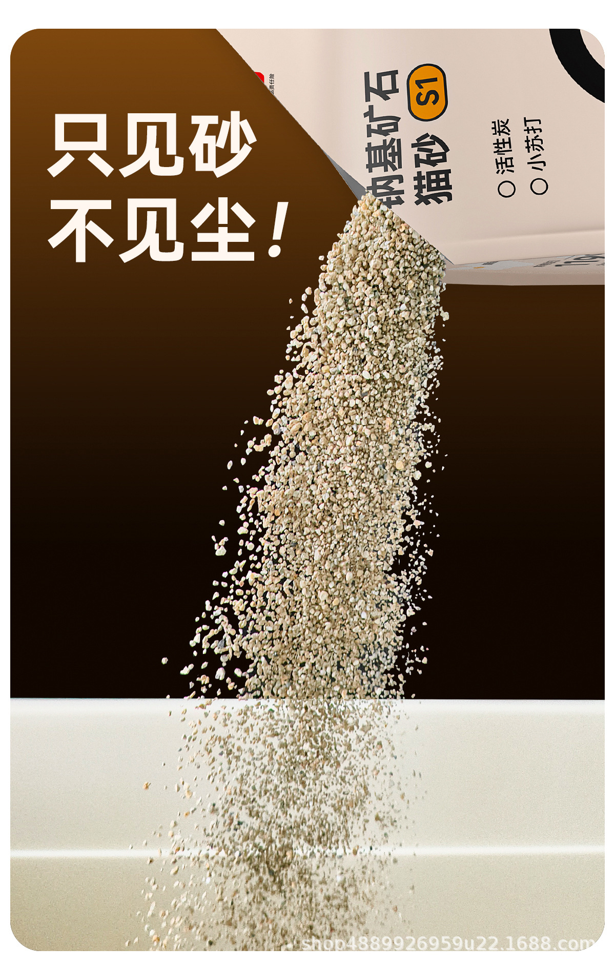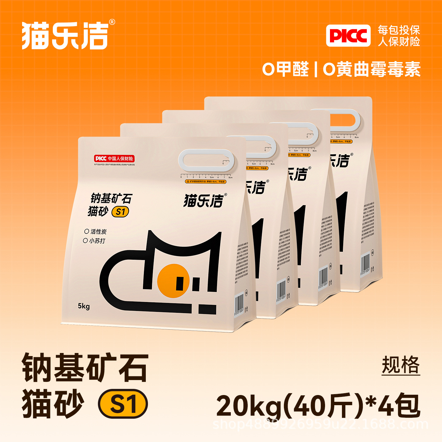 Mao Lejie S1 천연 나트륨 기반 광석 고양이 모래 거의 먼지가 없는 5kg 팩 5kg 활성탄 베이킹 소다