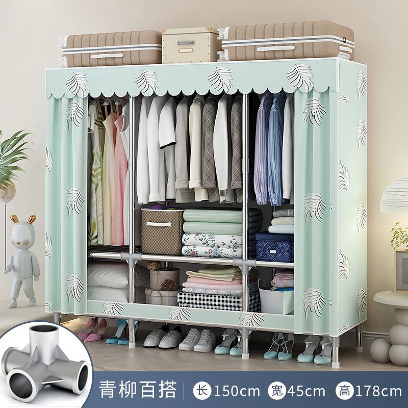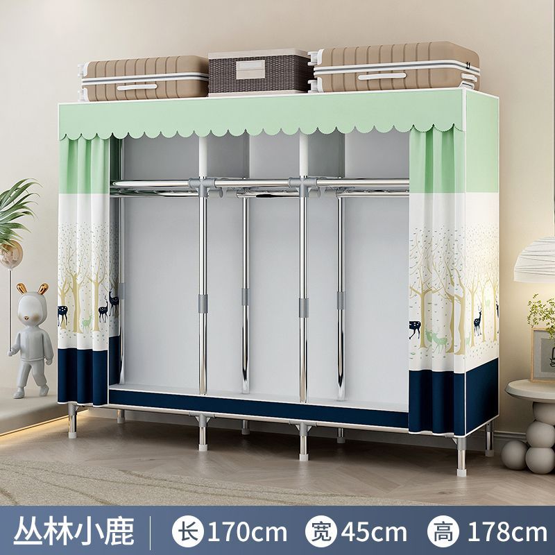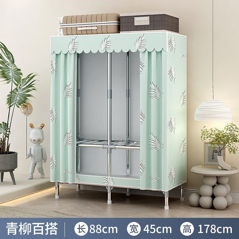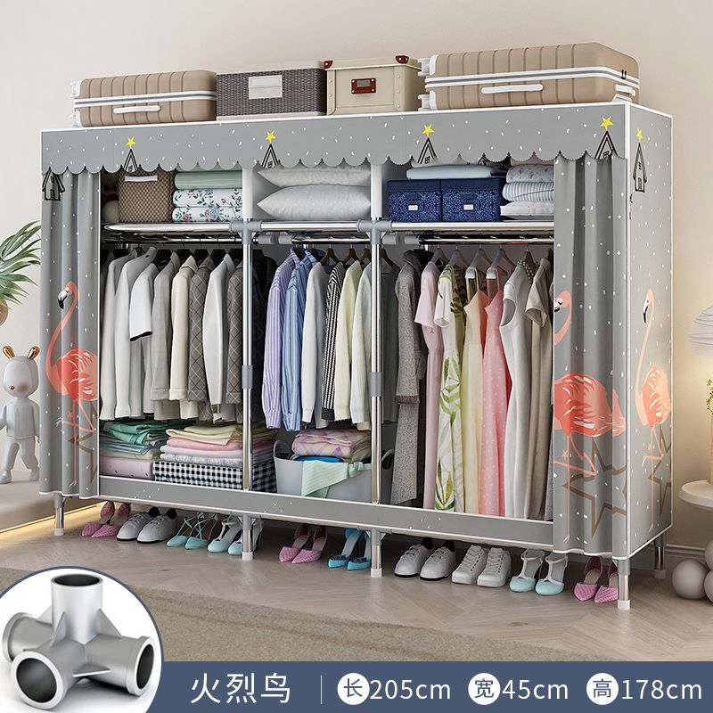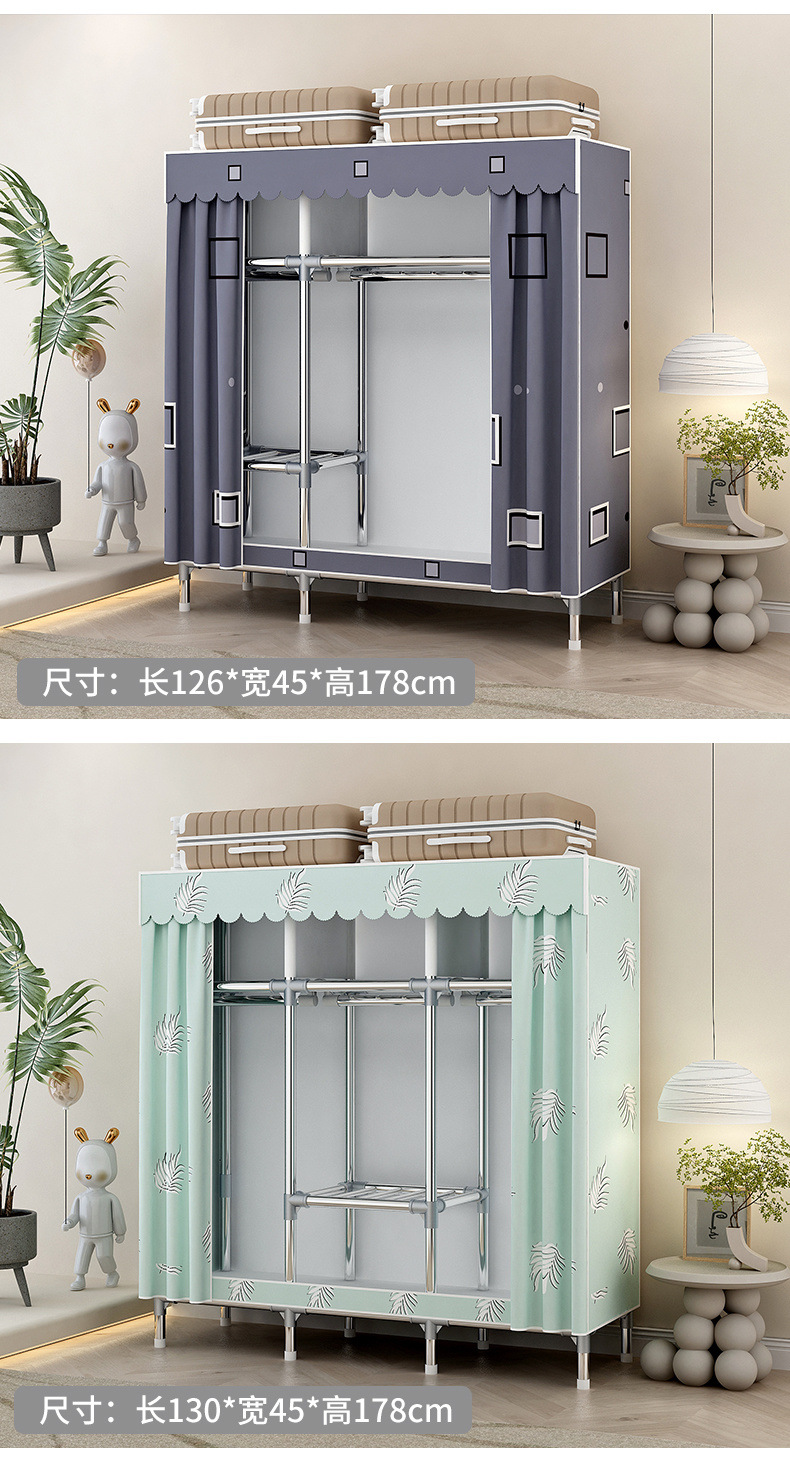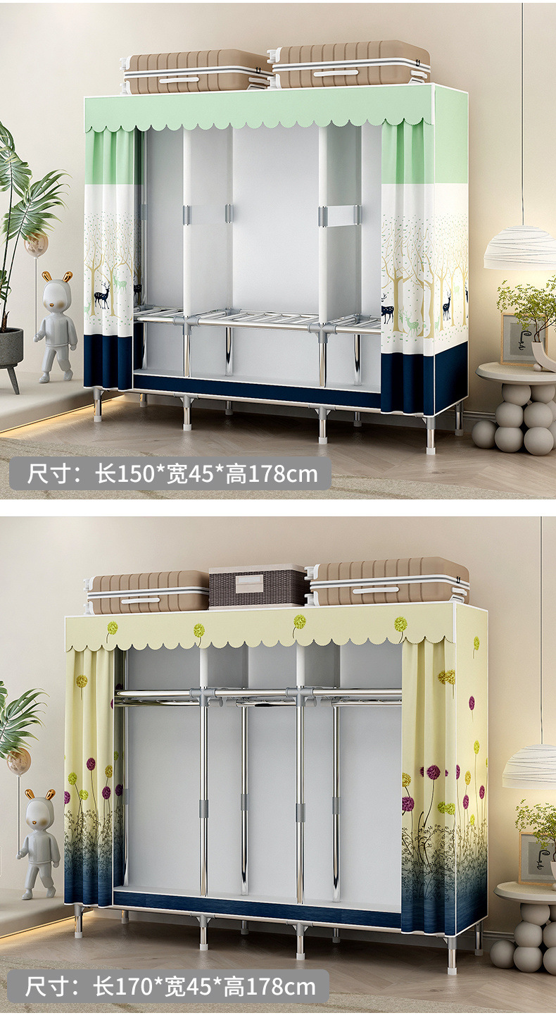 간단한 가정용 침실 조립 천 옷장 임대실 보관 알루미늄 합금 랙 두꺼운 바닥 옷장 선반