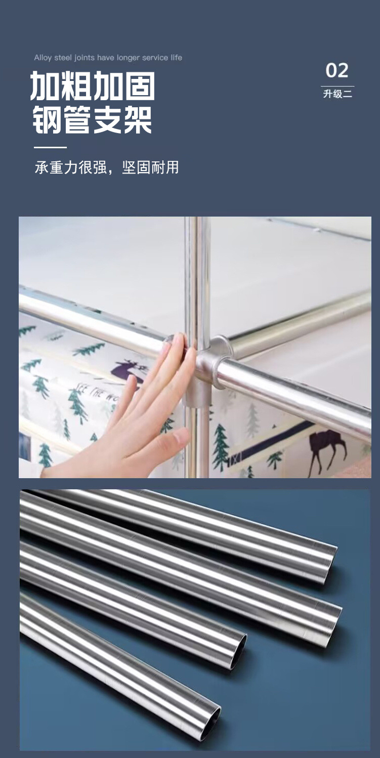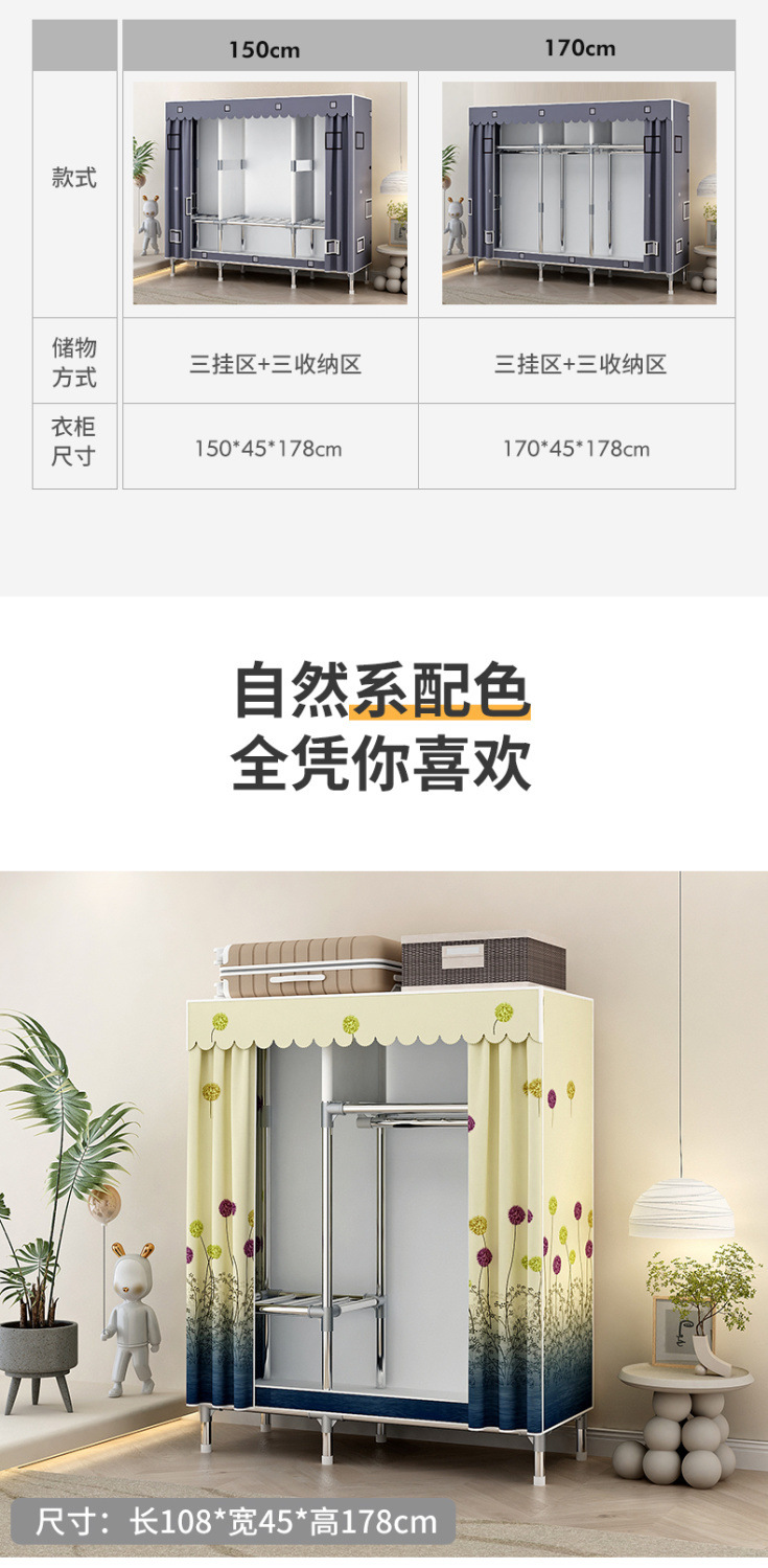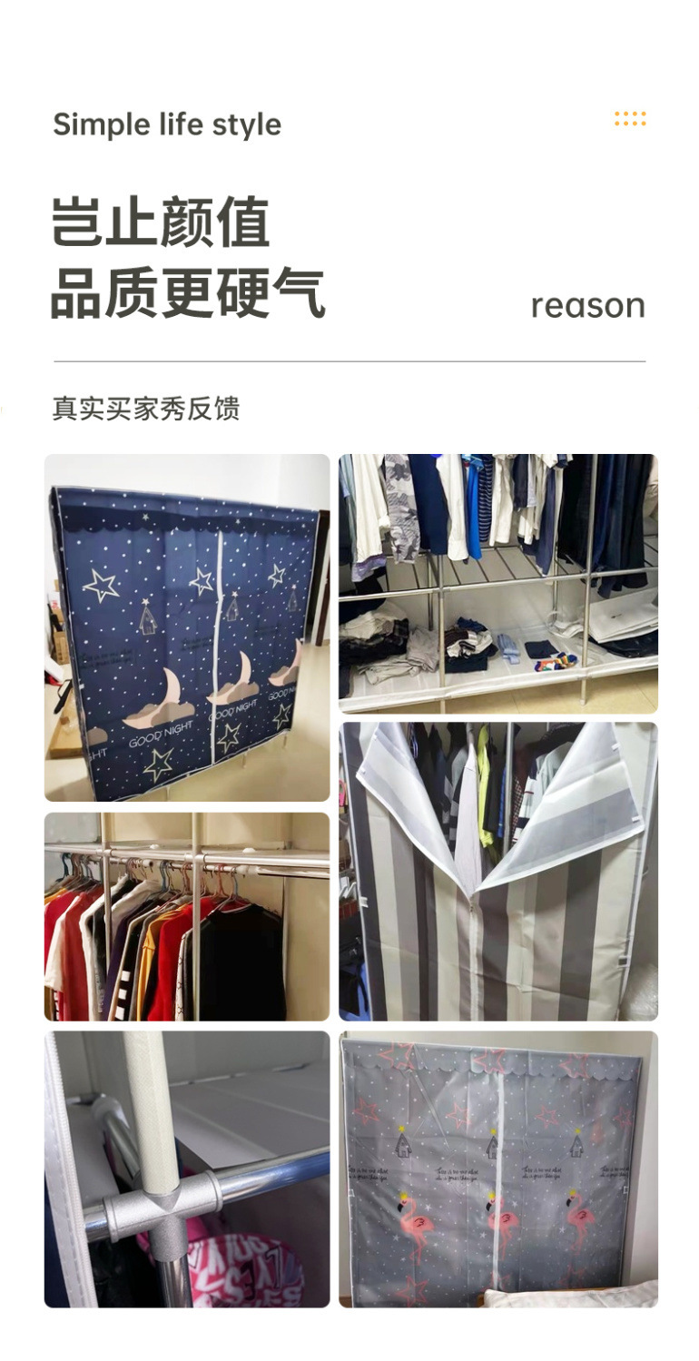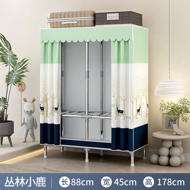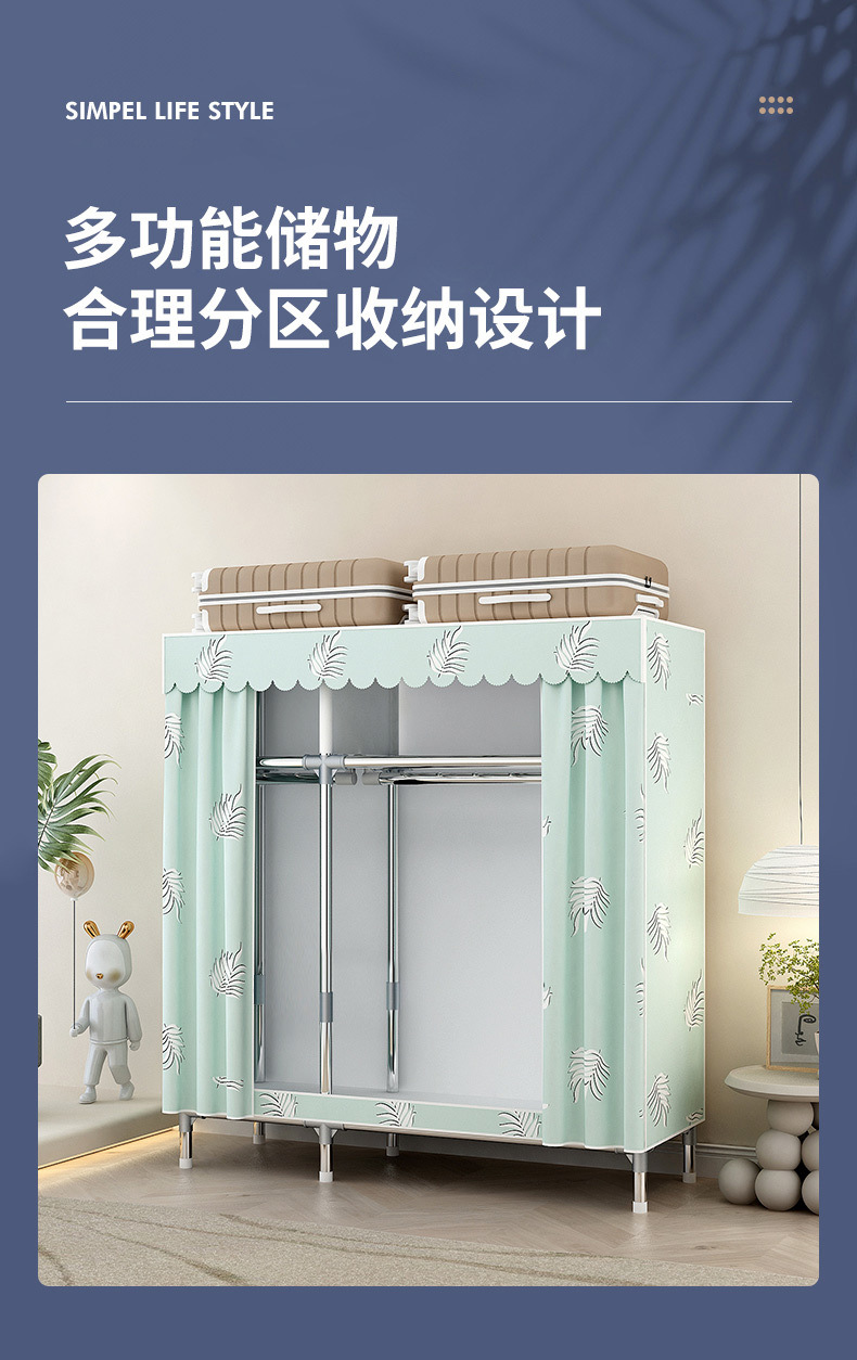 간단한 가정용 침실 조립 천 옷장 임대실 보관 알루미늄 합금 랙 두꺼운 바닥 옷장 선반