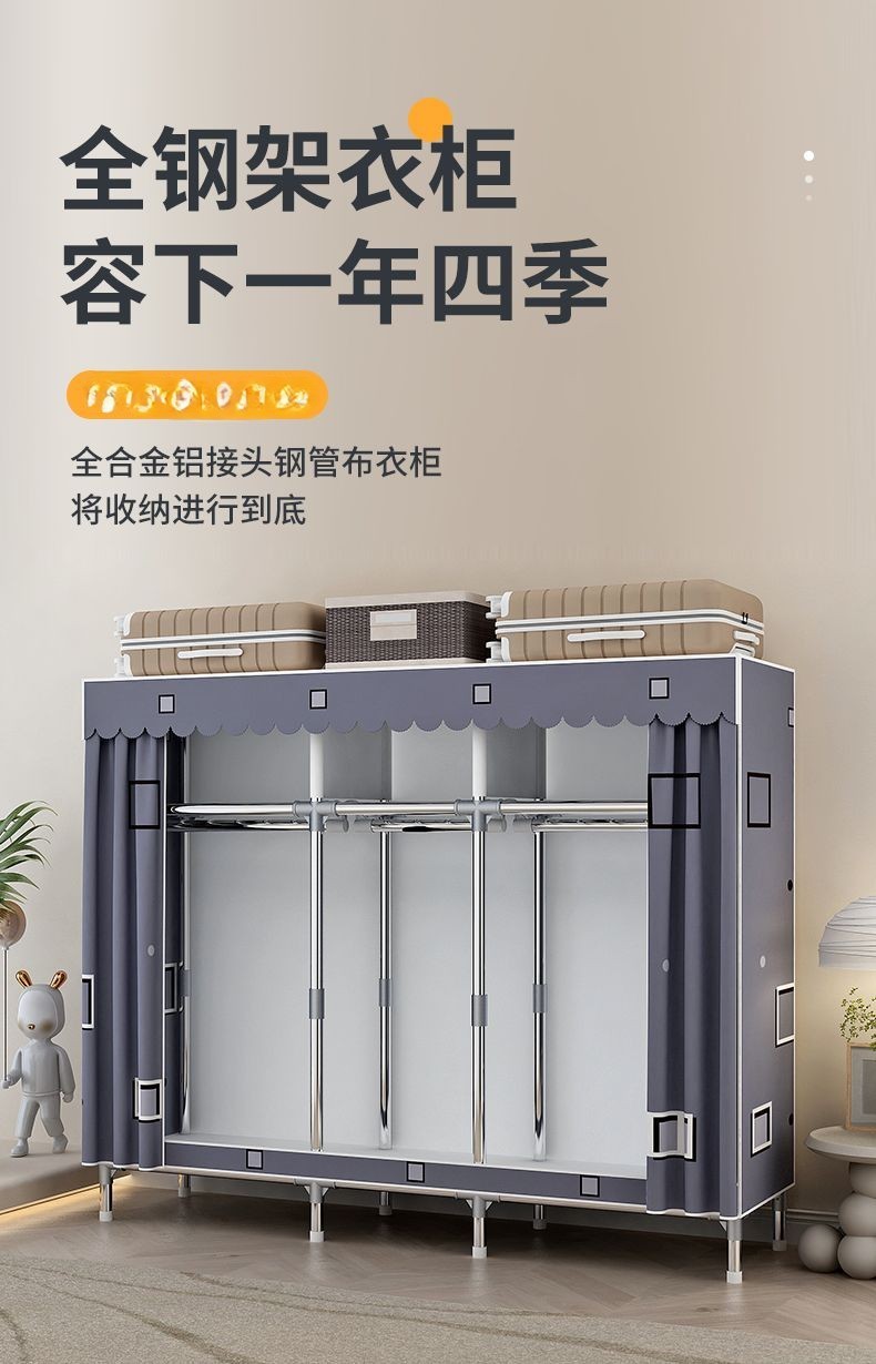 간단한 가정용 침실 조립 천 옷장 임대실 보관 알루미늄 합금 랙 두꺼운 바닥 옷장 선반스토어 가기