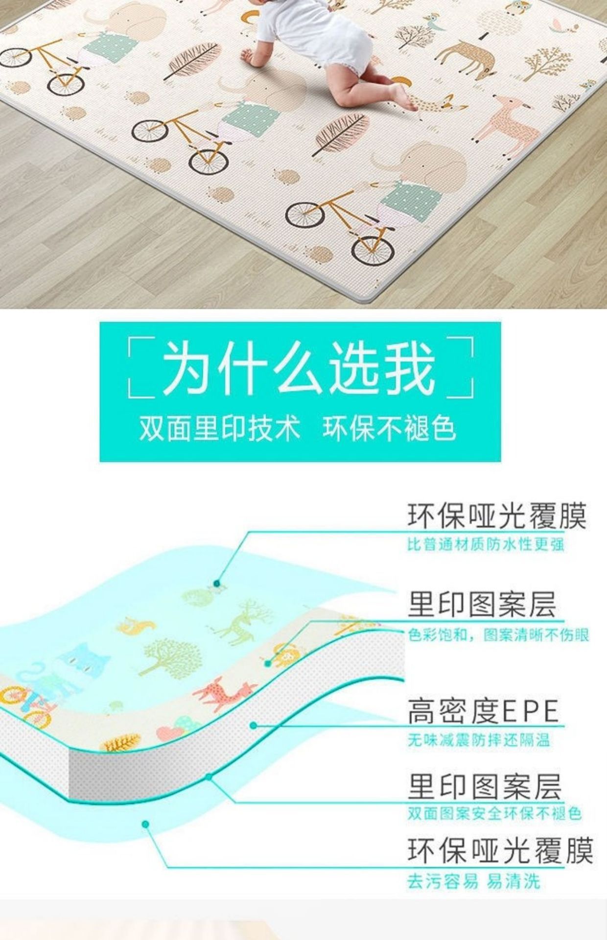 • 접이식 XPE 소재의 두께는 1.5cm(1.6m X 1.8m)입니다.✓✓