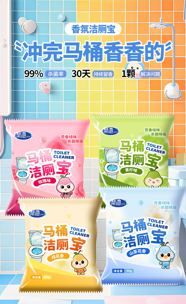 리치 가방형 이중 효과 변기 세정제 블루 버블 화장실 탈취제 악취 제거 방취제