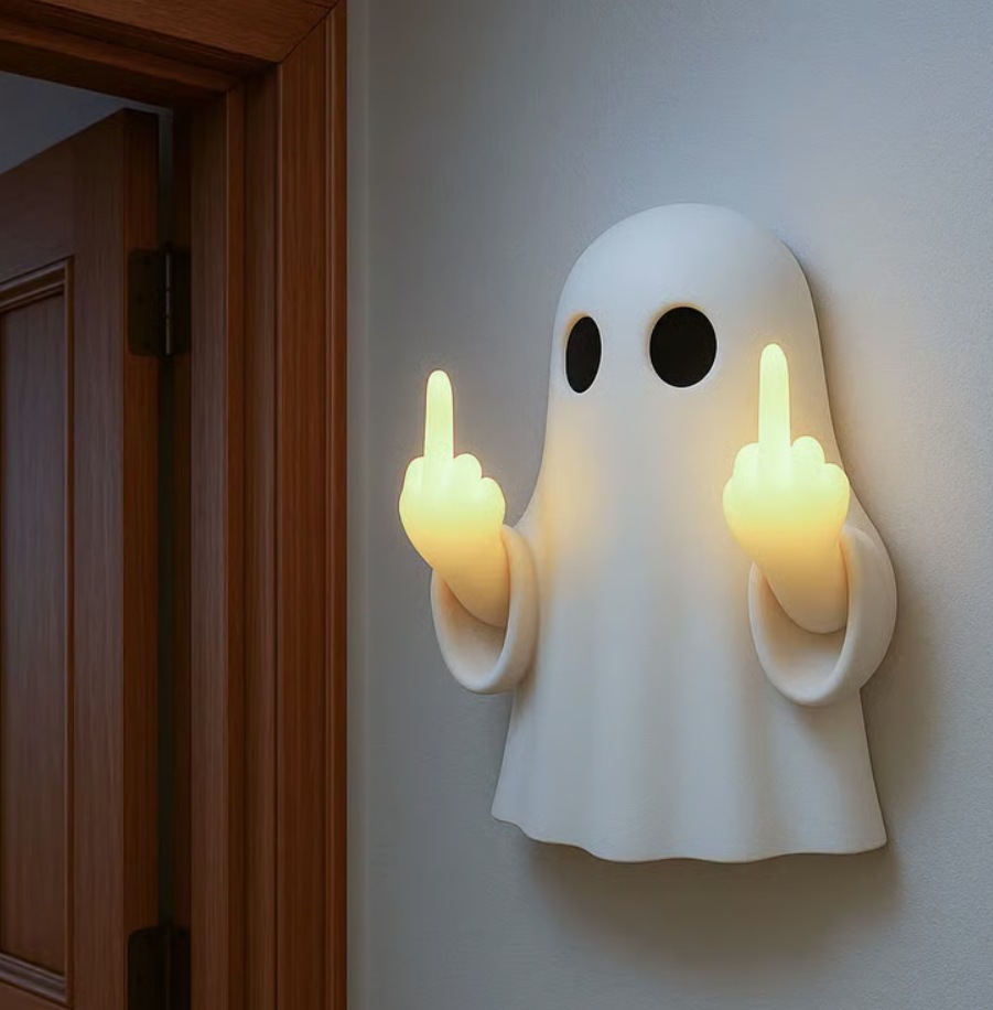 一个大胆的幽灵形状抬起两个中指 - 立即成为焦点和对话的开始。