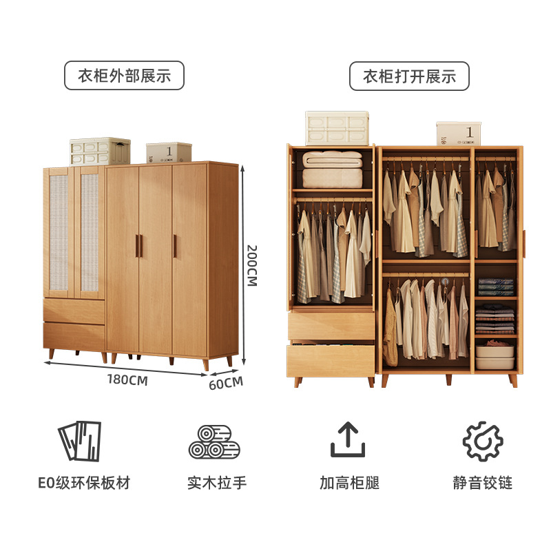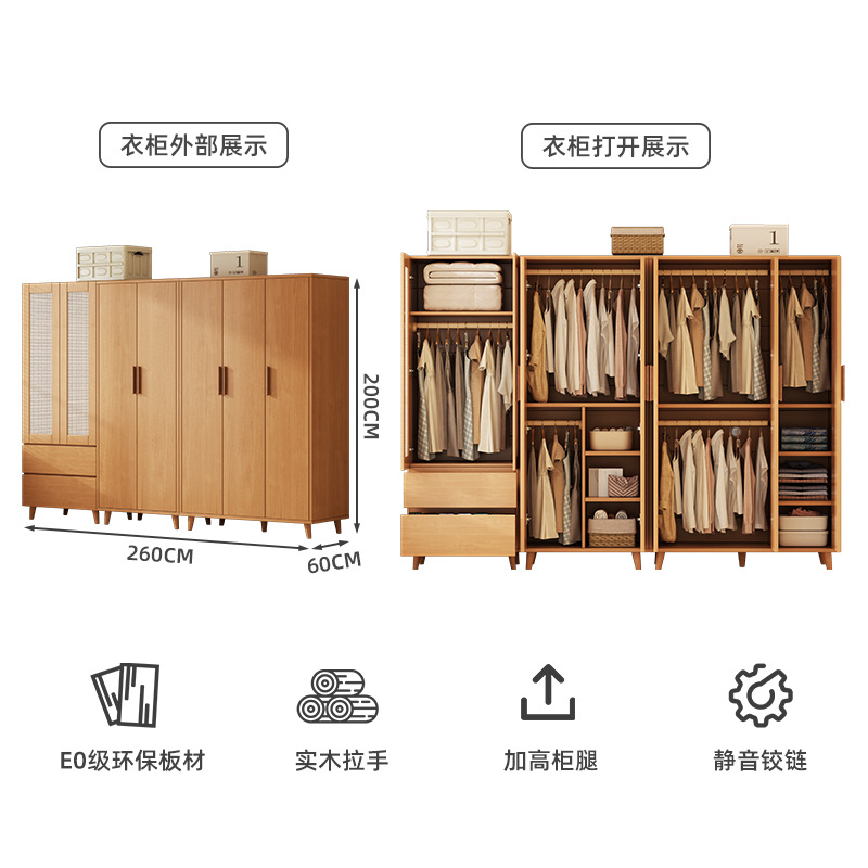 • [칠성고조] 칠문과 이중추첨 ★ 레트로 등나무 캐비닛 도어 + 나무 색상 240*60*200cm