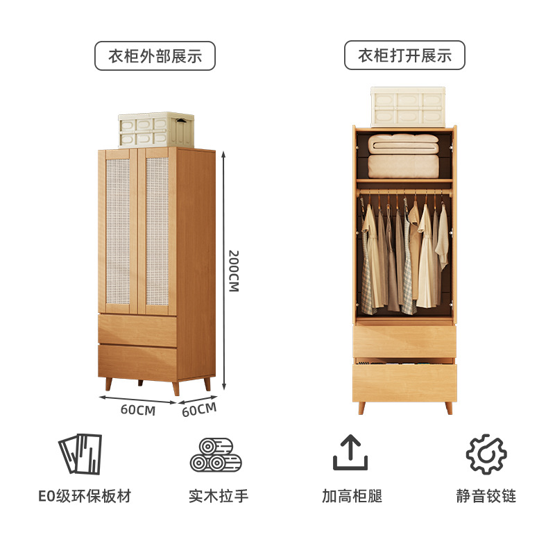 • [양문형 및 이중서랍] 레트로 등나무 캐비닛 도어 60*60*200cm