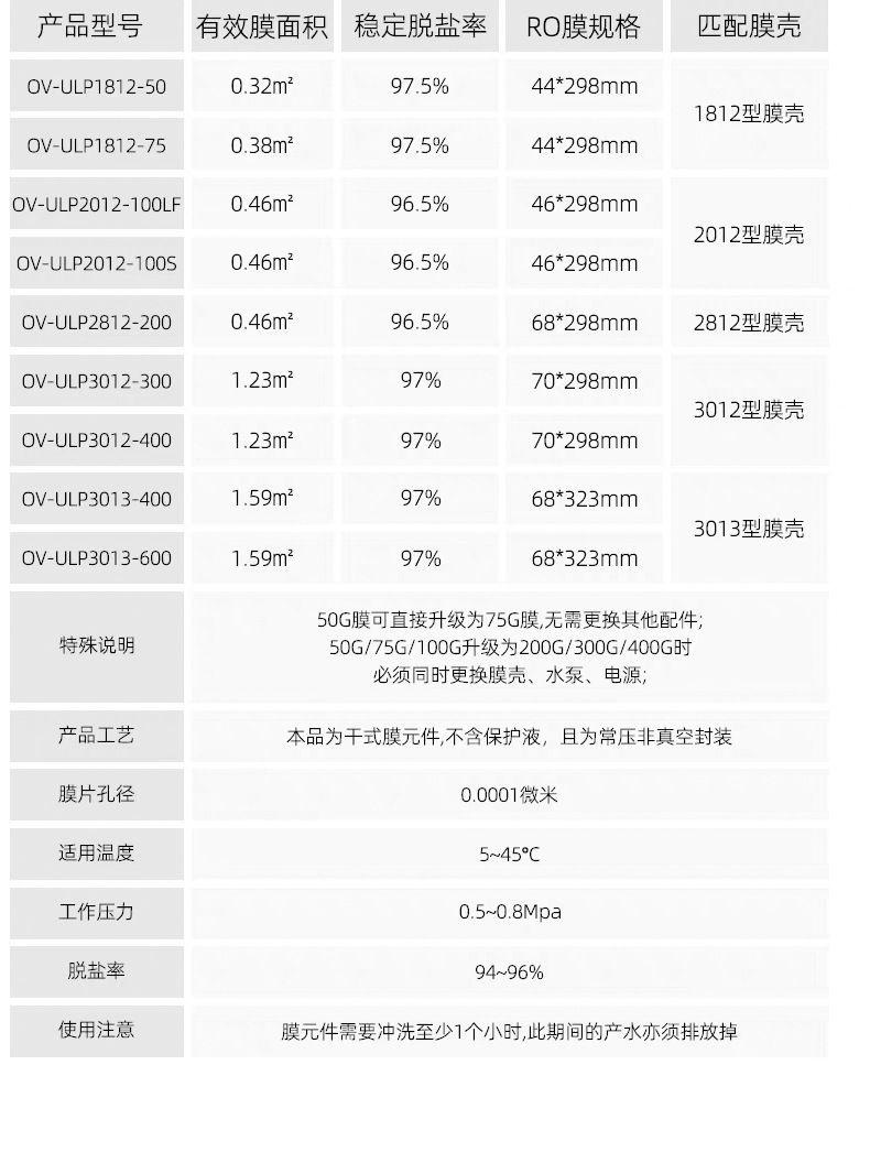 3212-800G Aowei ro 역삼투막 범용 정수기 ROOVAY 멤브레인 3013-800G 역삼투 필터 요소