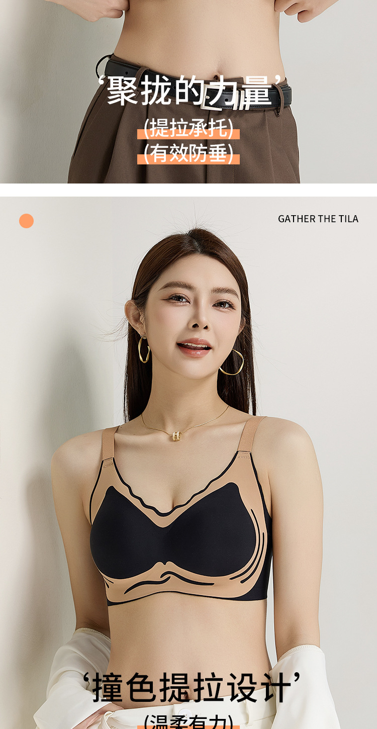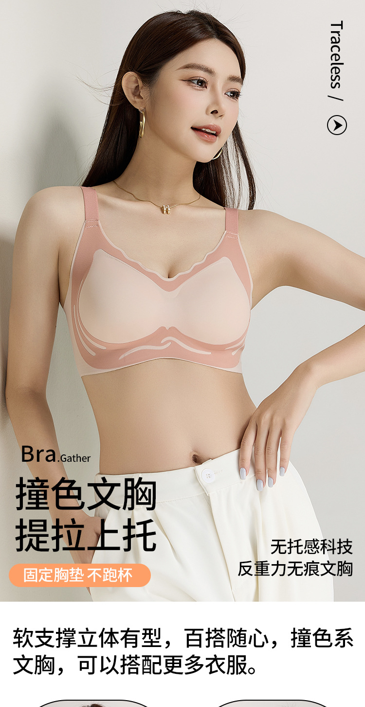 고품질 반중력 소프트 서포트 고정 컵 심리스 여성용 속옷, 대비 색상 리프팅 및 푸시업 여성용 등이 없는 와이어 프리 브라스토어 가기