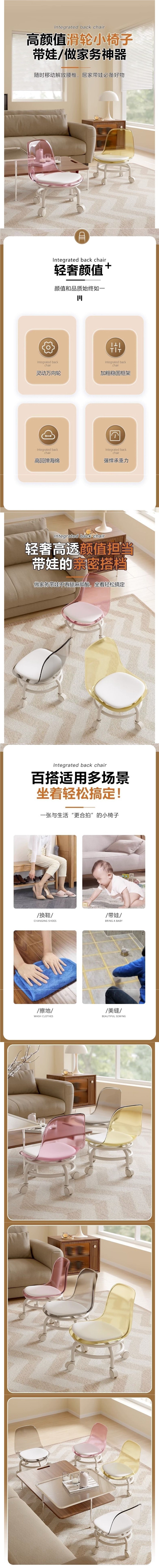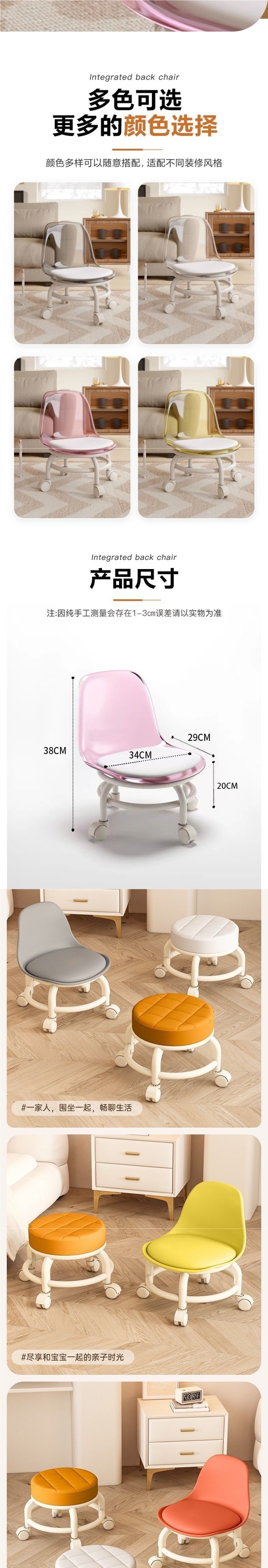 가정용 아크릴 범용 휠이있는 작은 의자, 아름다운 바느질 등받이 의자, 어린이 작은 벤치, 거실 소파 의자스토어 가기