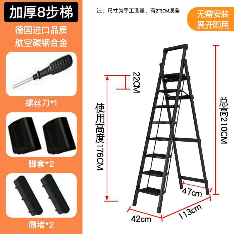 • [모든 가족의 높이에 적합] 안전하고 튼튼함 - 행운을 빕니다 - [매우 안정적인 8단 사다리] 독일산 탄소강 합금 + 내하중 0kg