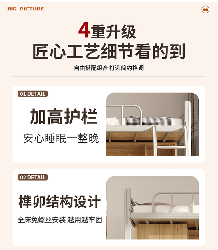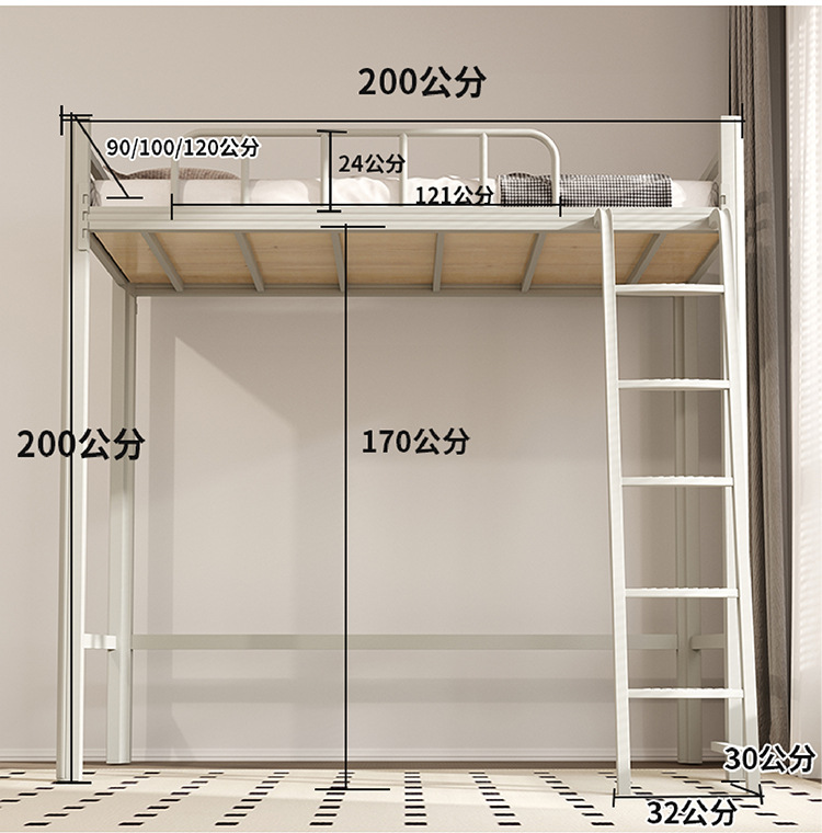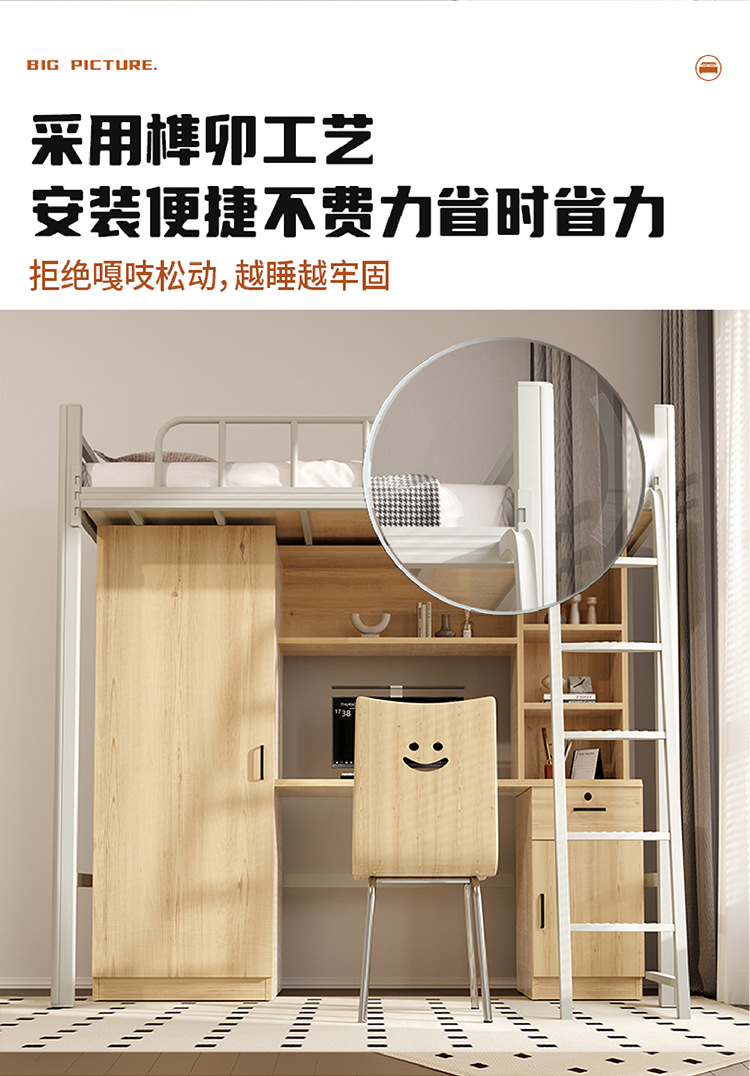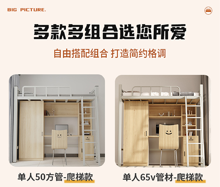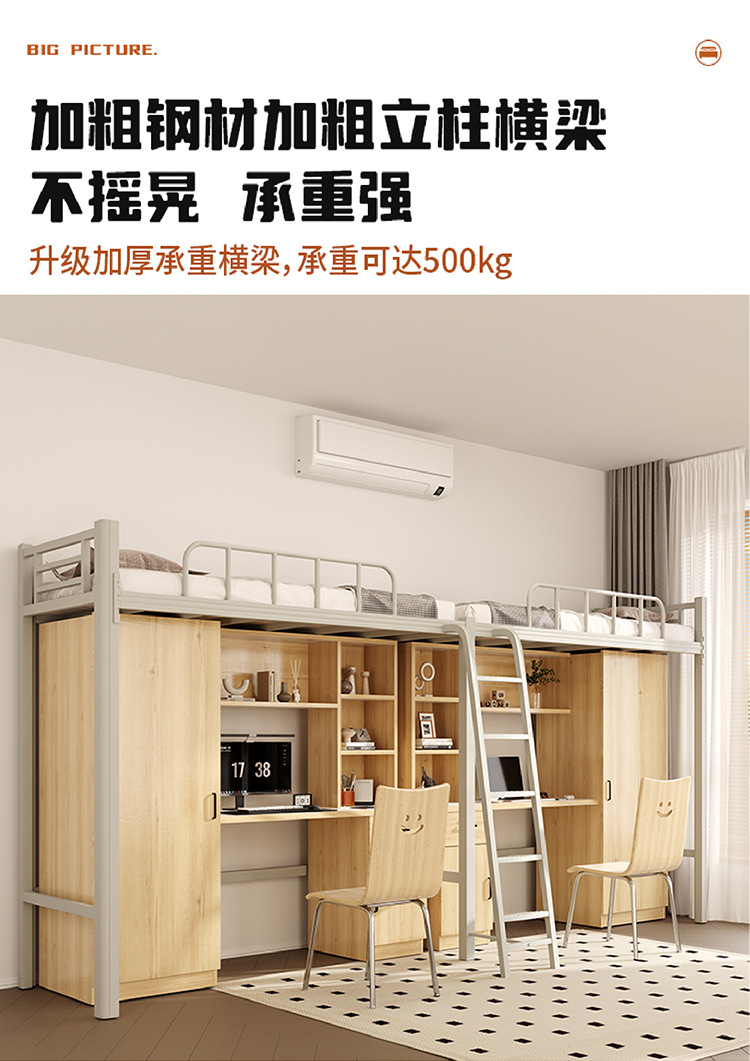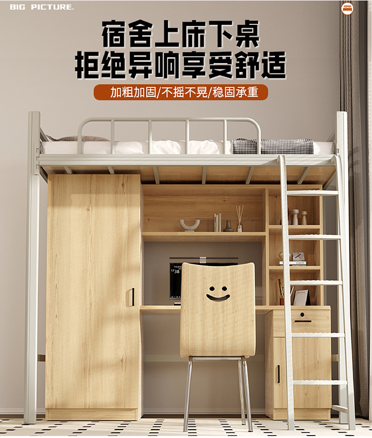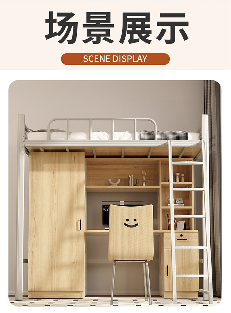 상단 침대와 하단 테이블이 있는 장시안 공장 맞춤형 학생 기숙사 조합 침대 아파트 철제 침대 바닥 사다리 이층 침대스토어 가기