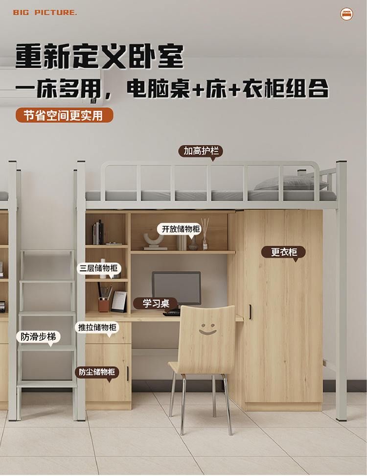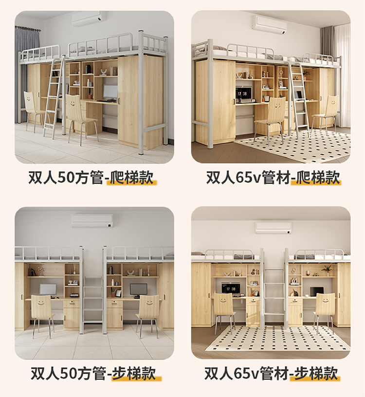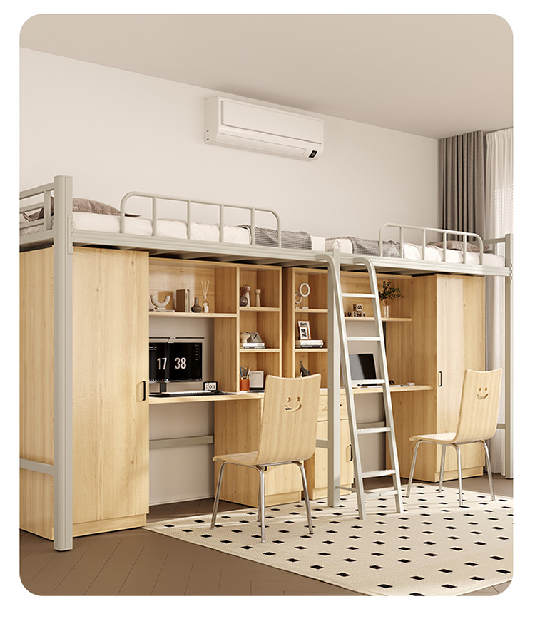 상단 침대와 하단 테이블이 있는 장시안 공장 맞춤형 학생 기숙사 조합 침대 아파트 철제 침대 바닥 사다리 이층 침대