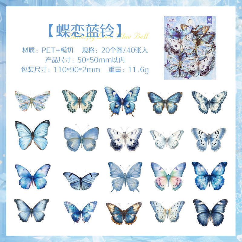 봄 나비 시리즈 수채화 시뮬레이션 나비 애완 동물 방수 스티커 팩 diy 핸드북 장식 일기 재료 콜라주스토어 가기
