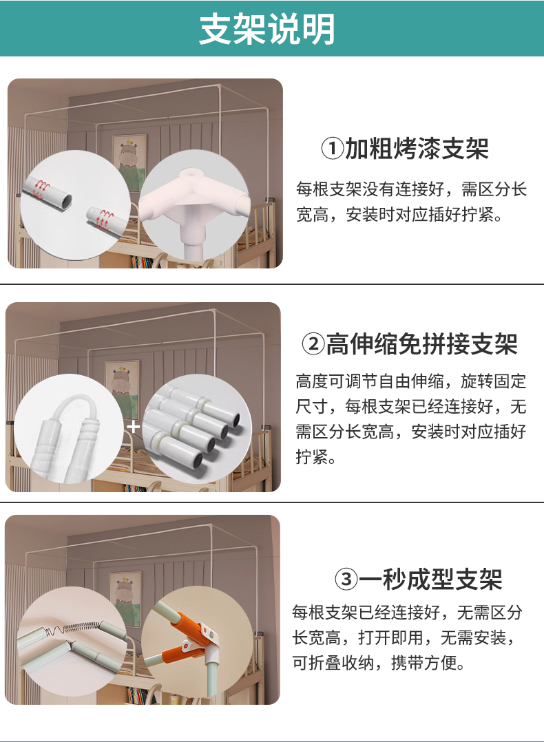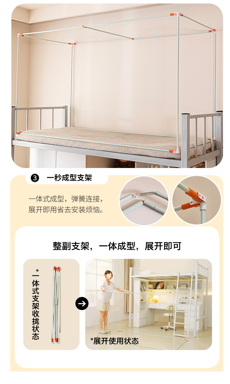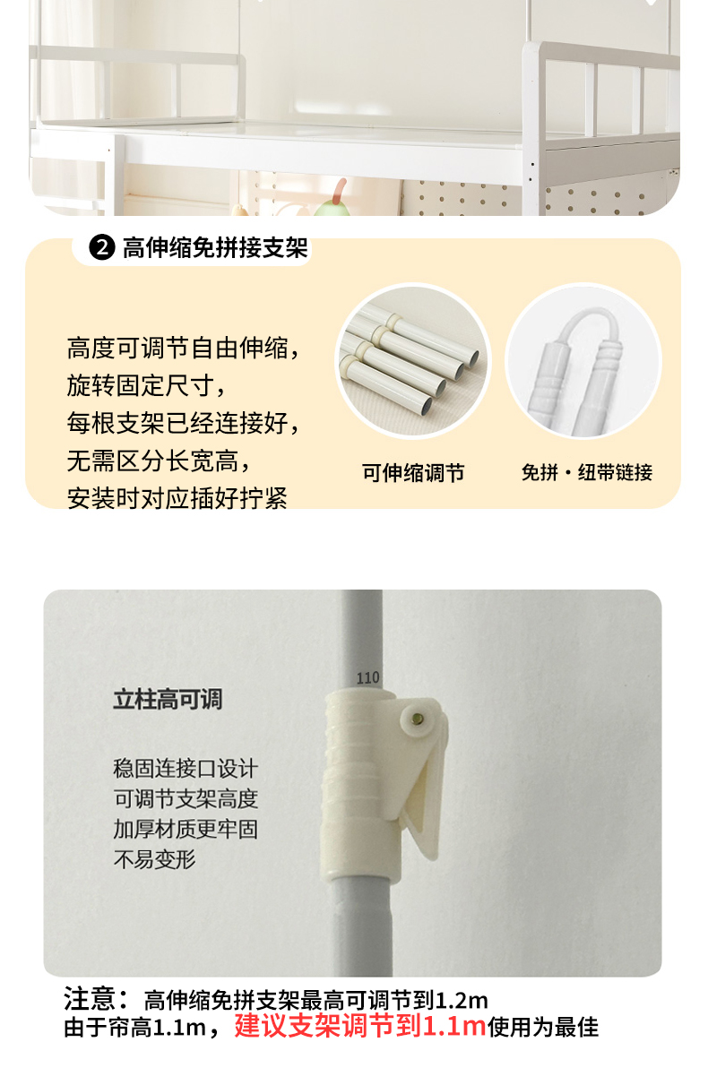 • 0.9m 침대, 이층침대용 범용 [접합이 없는 고신축 브라켓] 190x90x 높이 90~120