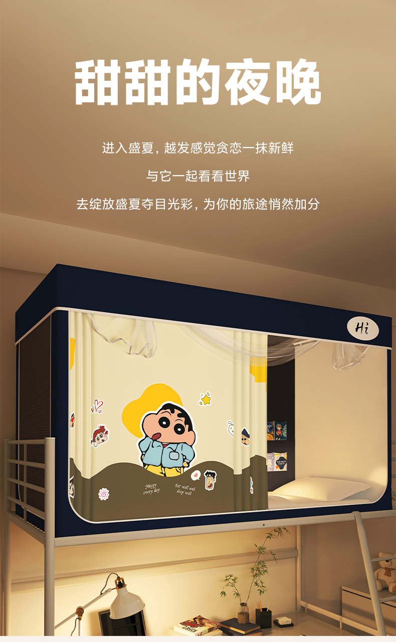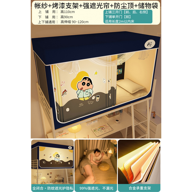 크레용신짱 침대커튼 모기장 일체형 대학 기숙사 이층침대 차광 올인클루시브 침대커튼 침실 90x190