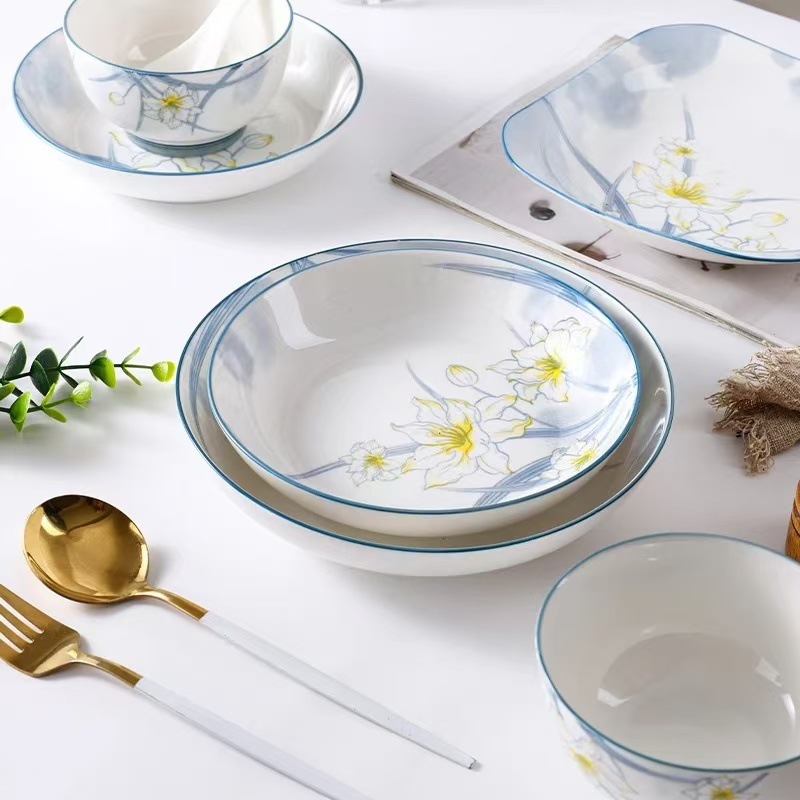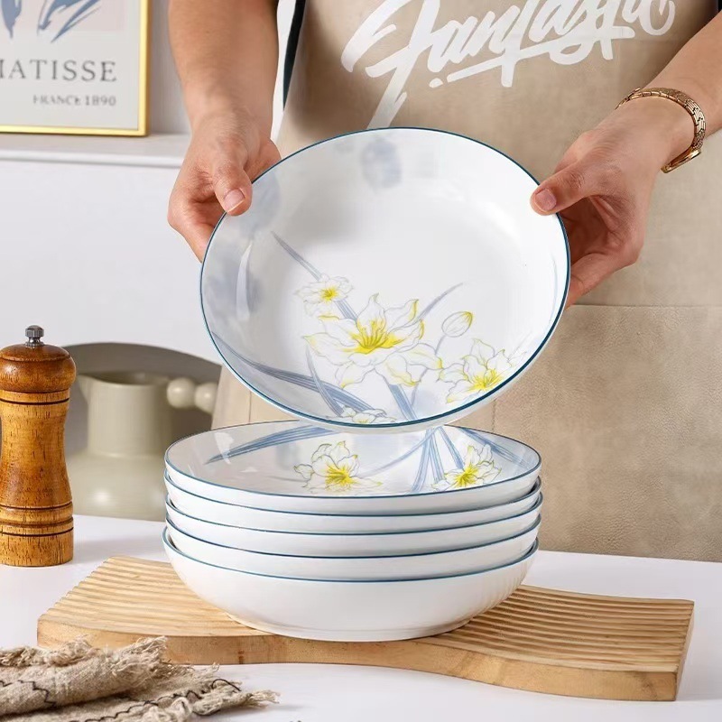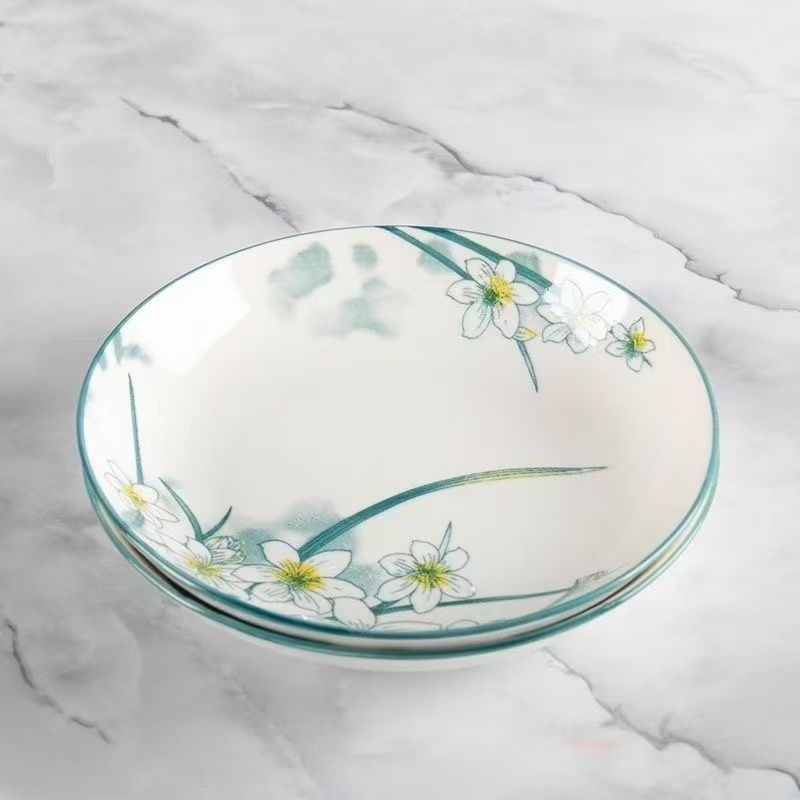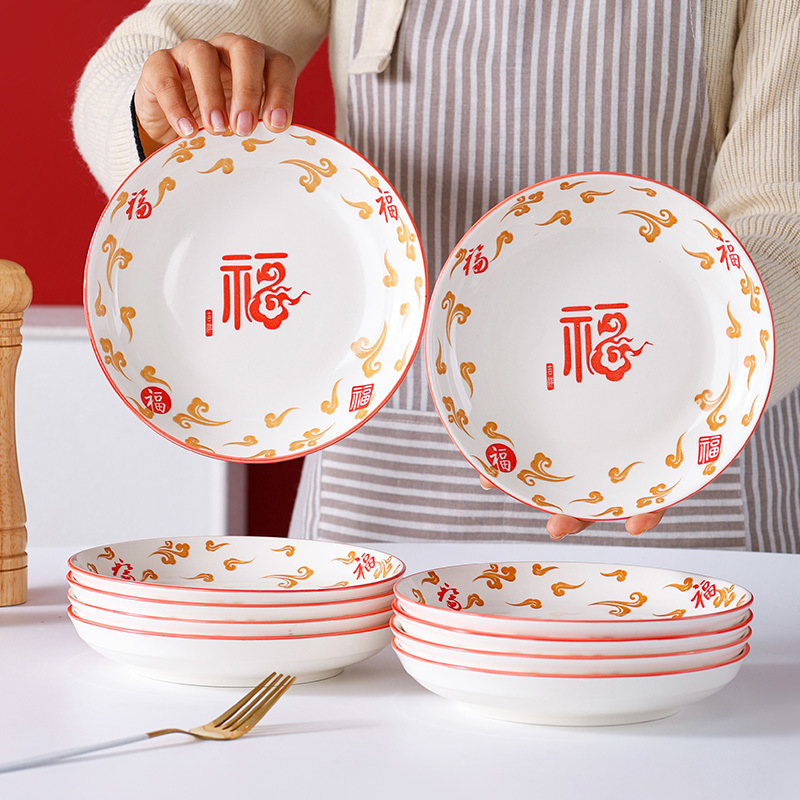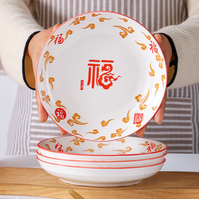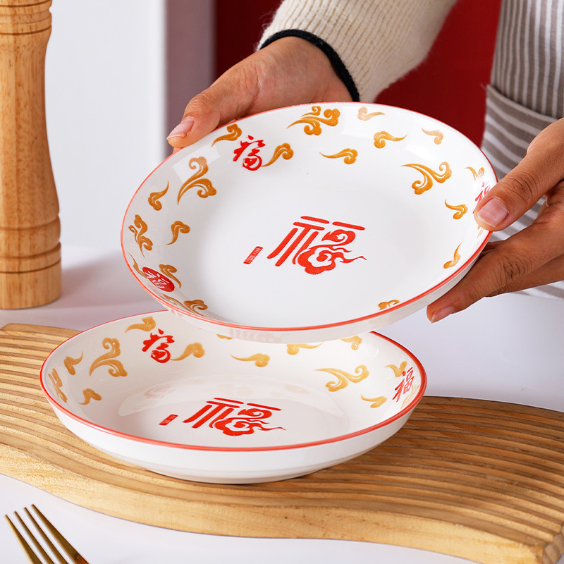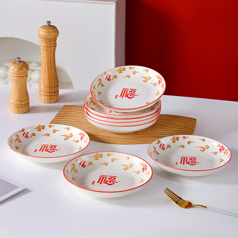 7inch 수선화 세트 접시 레드 럭키 접시 세라믹 원형 접시 가정용 유약 색상 고가치스토어 가기