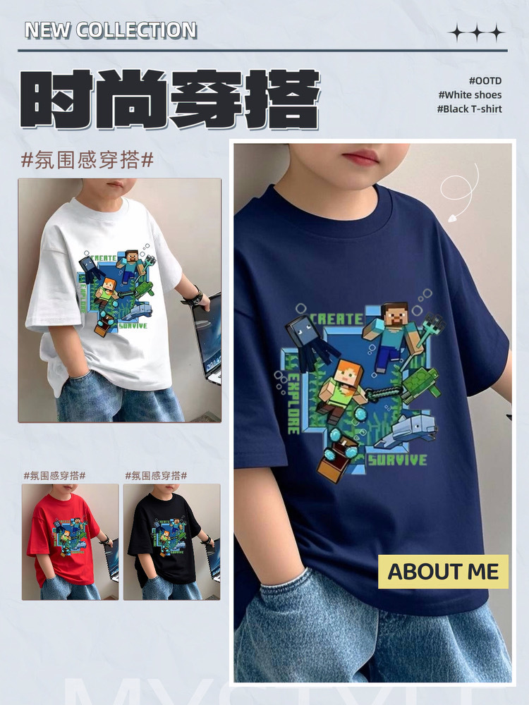 NASA 短袖 我的世界 主题T恤 方块世界元素 开启冒险穿搭新风尚