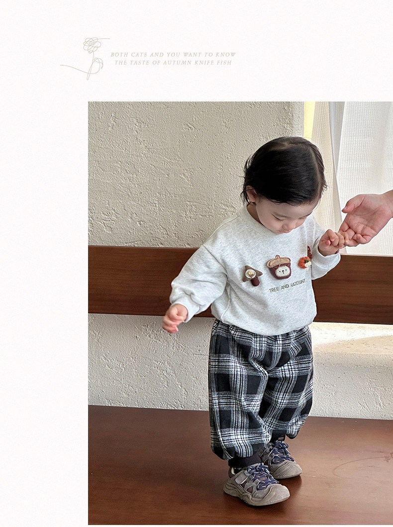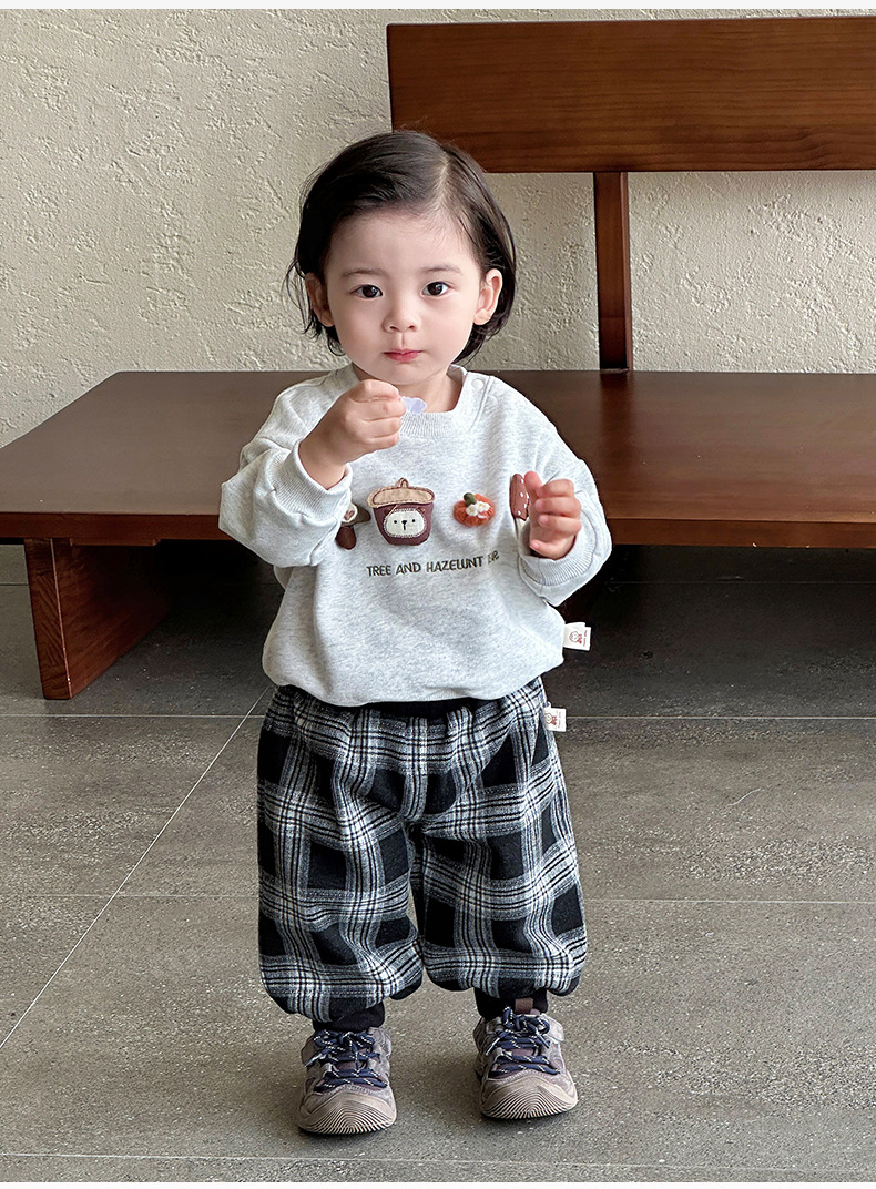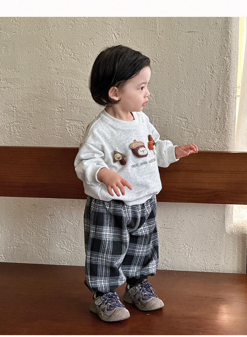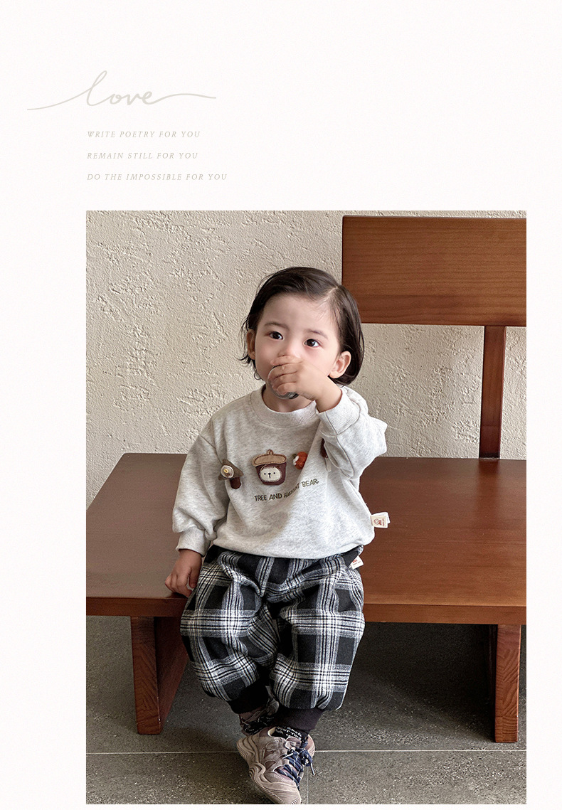 아기 소년 한국 스타일 가을 투피스 세트 유아용 스웨트 셔츠 바지 정장 아기 스타일 카테고리 A 만화 옷스토어 가기