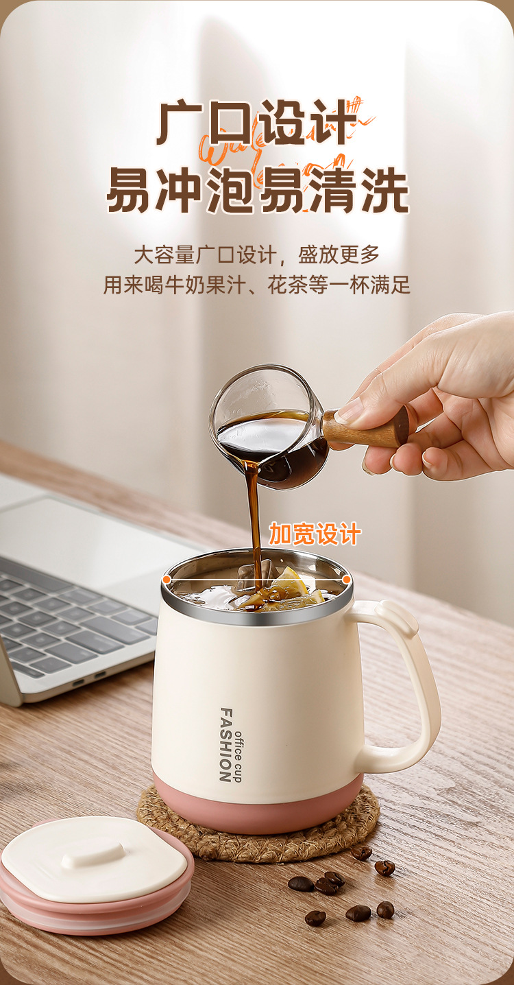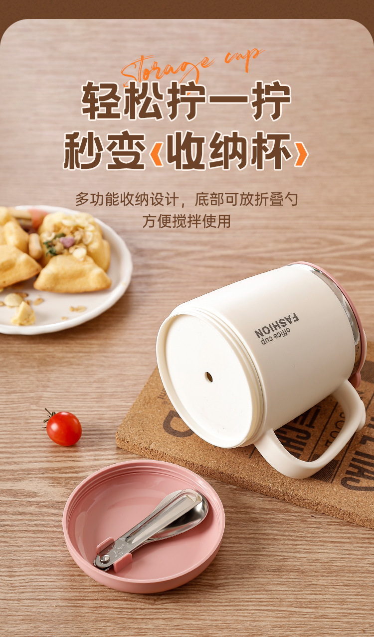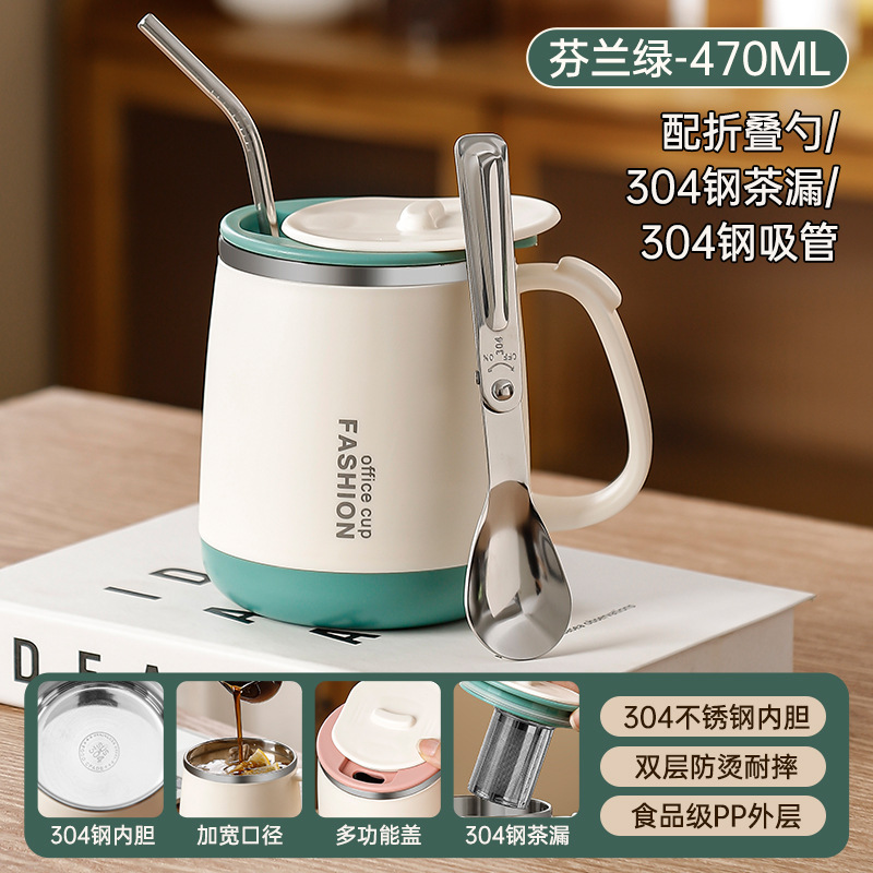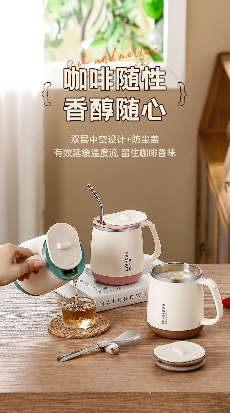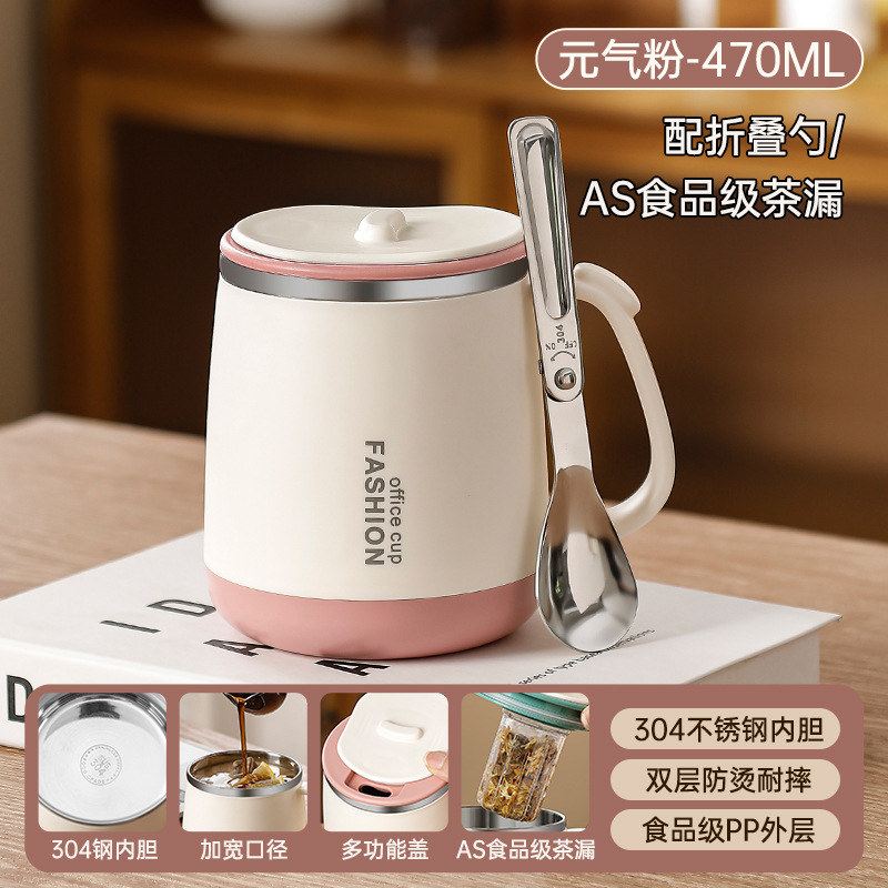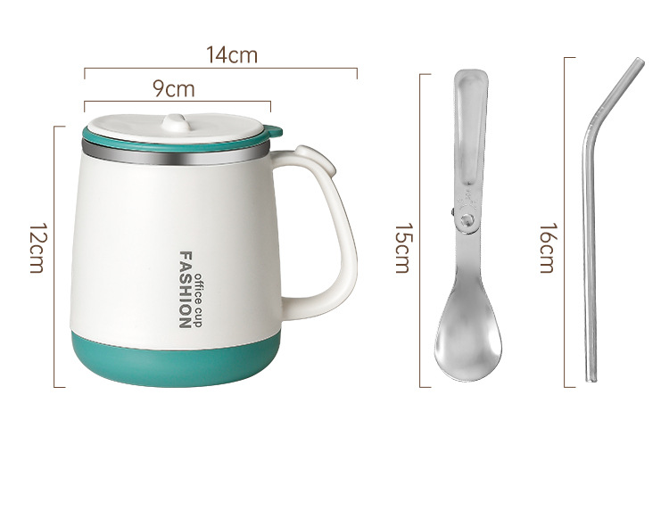 머그잔 304 스테인레스 스틸 사무실 물컵 소녀의 고급스러운 커피 컵 뚜껑과 스푼이있는 절묘한 차 컵