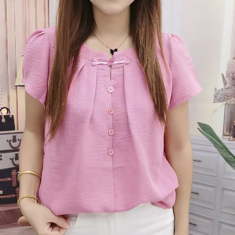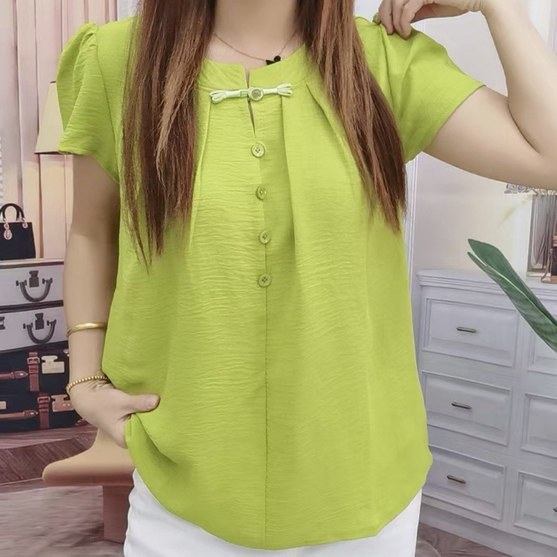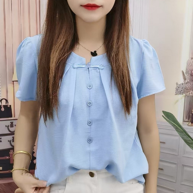 반팔 쉬폰 셔츠 루즈 셔츠 배를 덮는 여름 2025 새로운 복고풍 버튼 셔츠 짧은 탑 핫 스타일