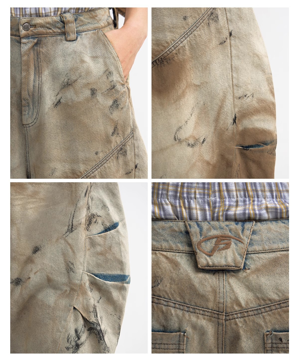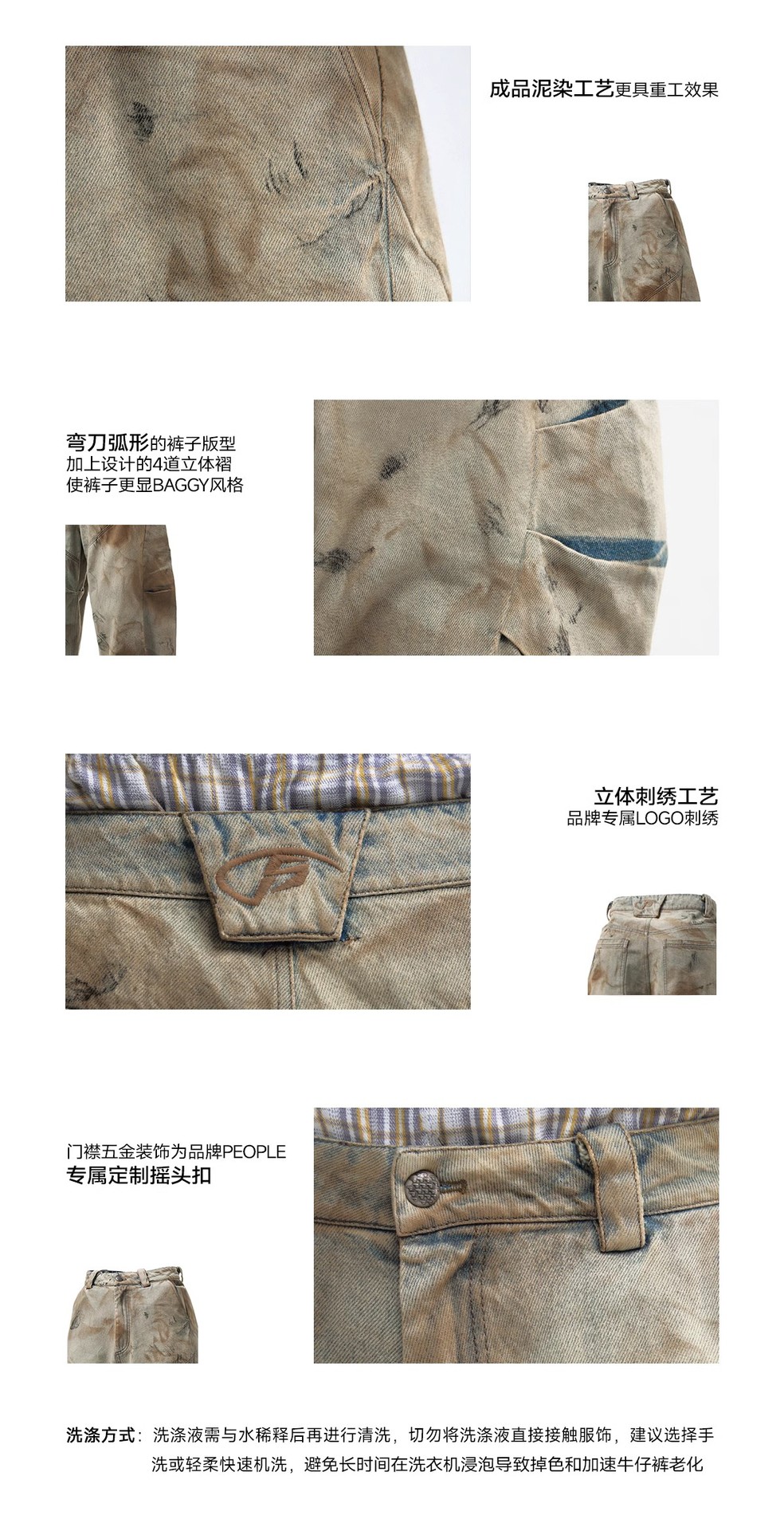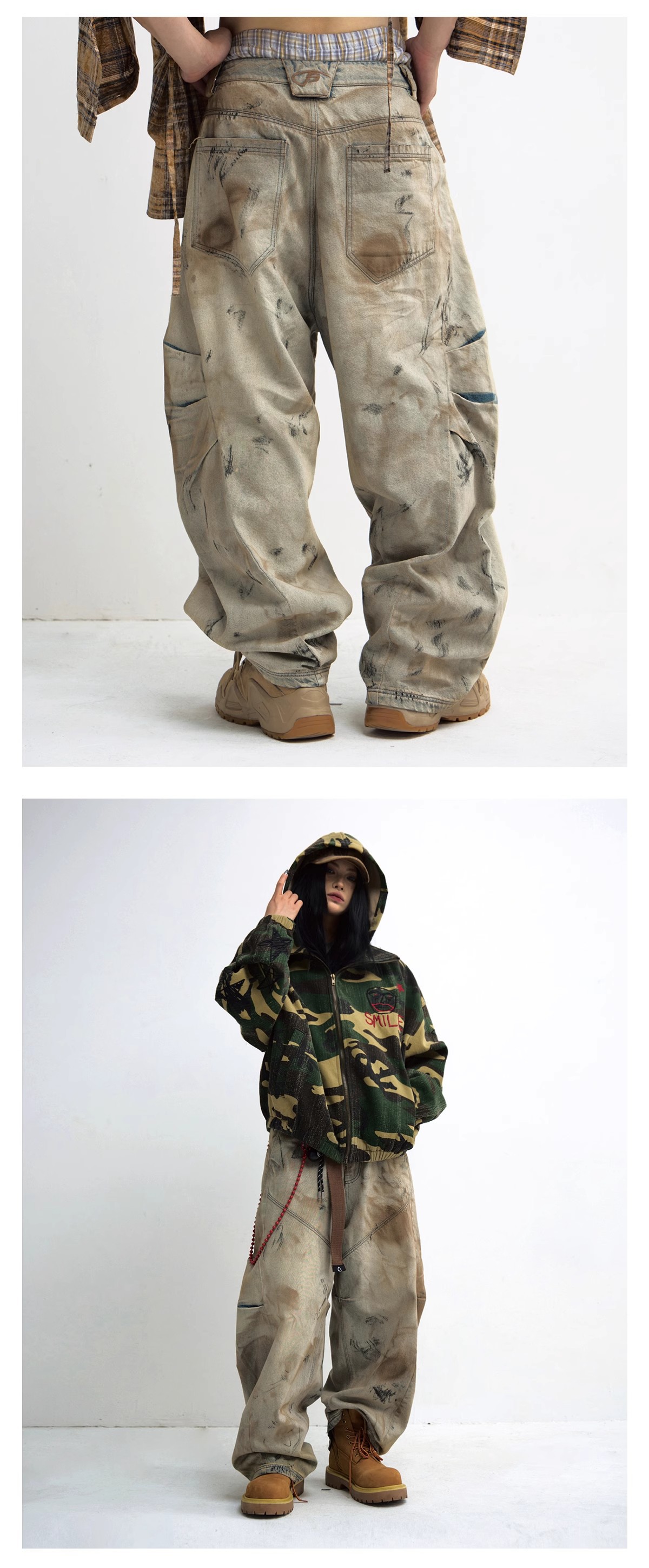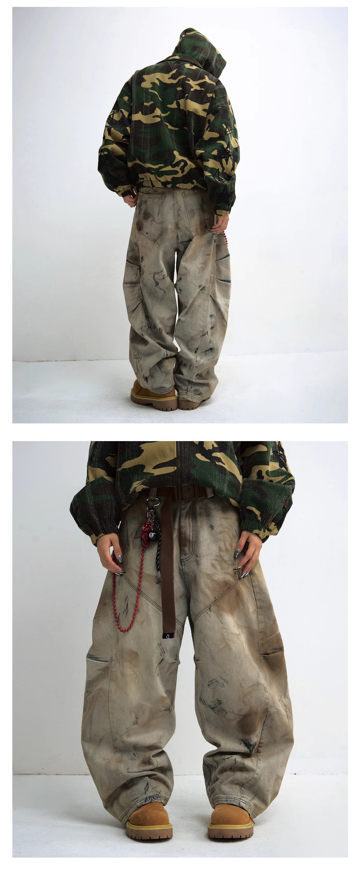 남성용 워싱 디스트레스드 디자인 청바지 2025 뉴 헤비듀티 더티 워시 와이드 레그 루즈 세이버 팬츠 롱 팬츠스토어 가기
