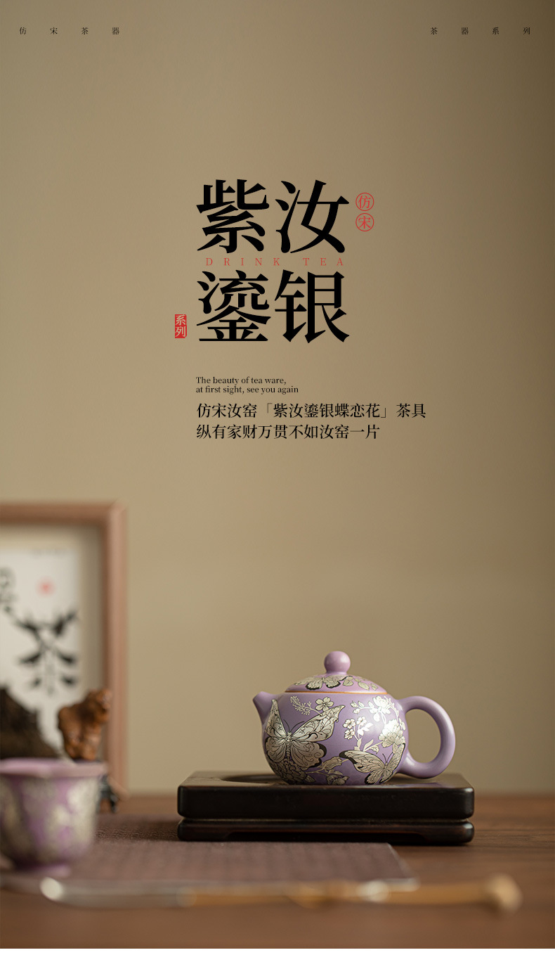 • "송나라 여요 모방 ""보라색 여금은 나비 사랑 꽃""·웨신 찻주전자"