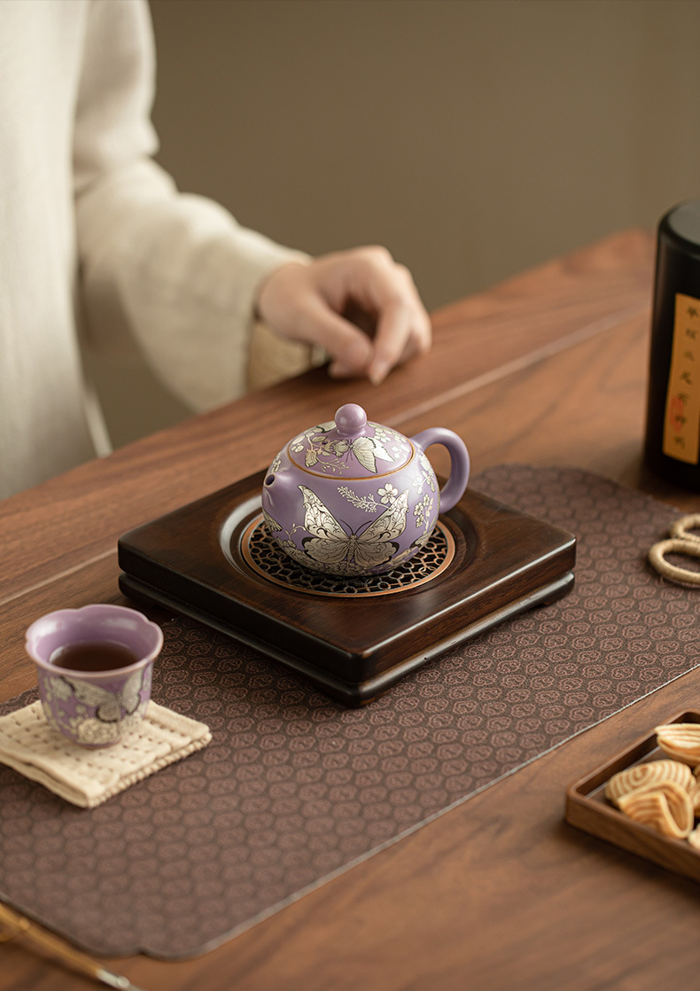 수제 실버 나비 보라색 루 차 주전자, 시시 주전자, 세라믹 차 세트, 절묘한 차 주전자, 가정용 쿵푸 차 세트스토어 가기