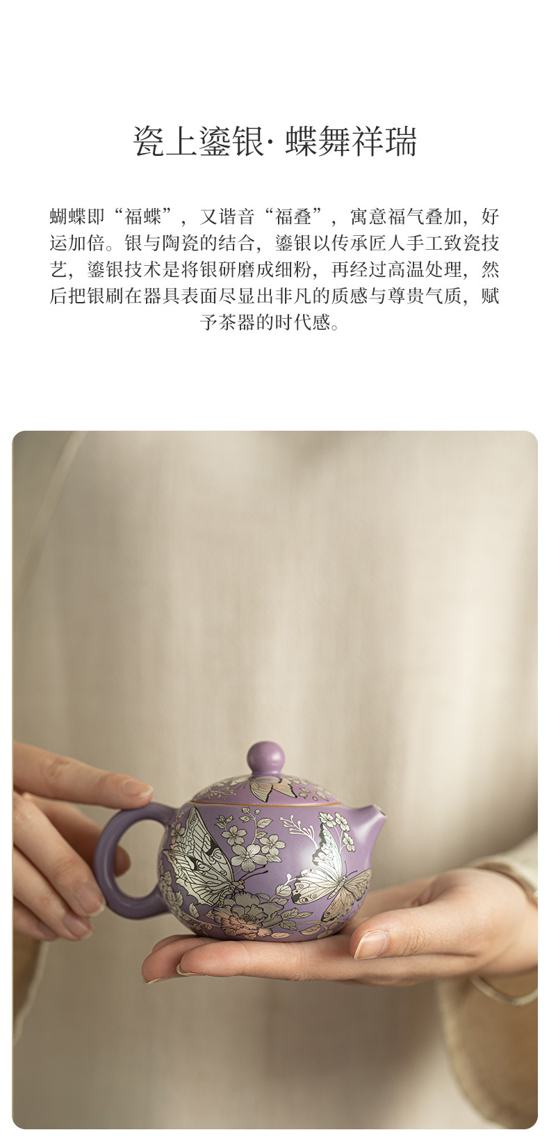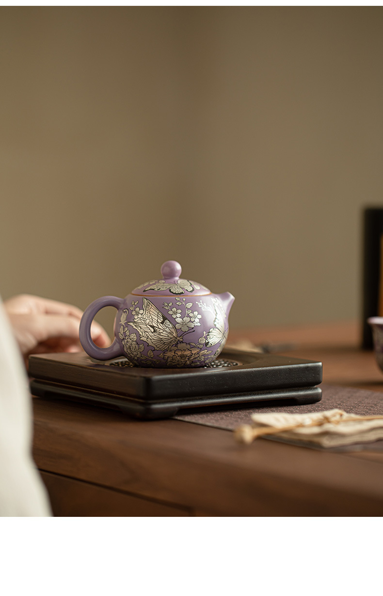 수제 실버 나비 보라색 루 차 주전자, 시시 주전자, 세라믹 차 세트, 절묘한 차 주전자, 가정용 쿵푸 차 세트