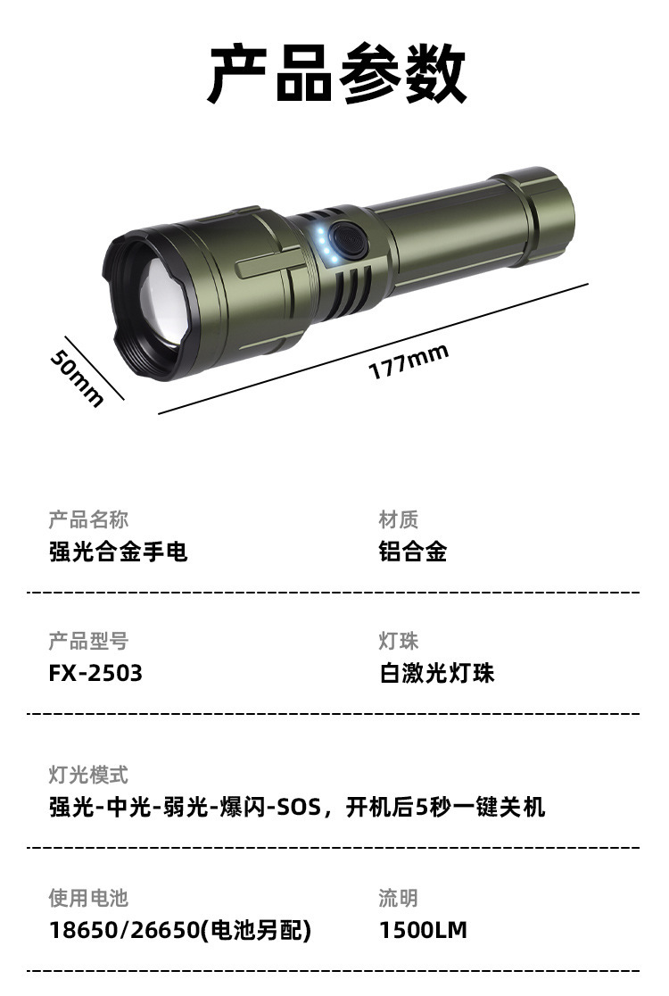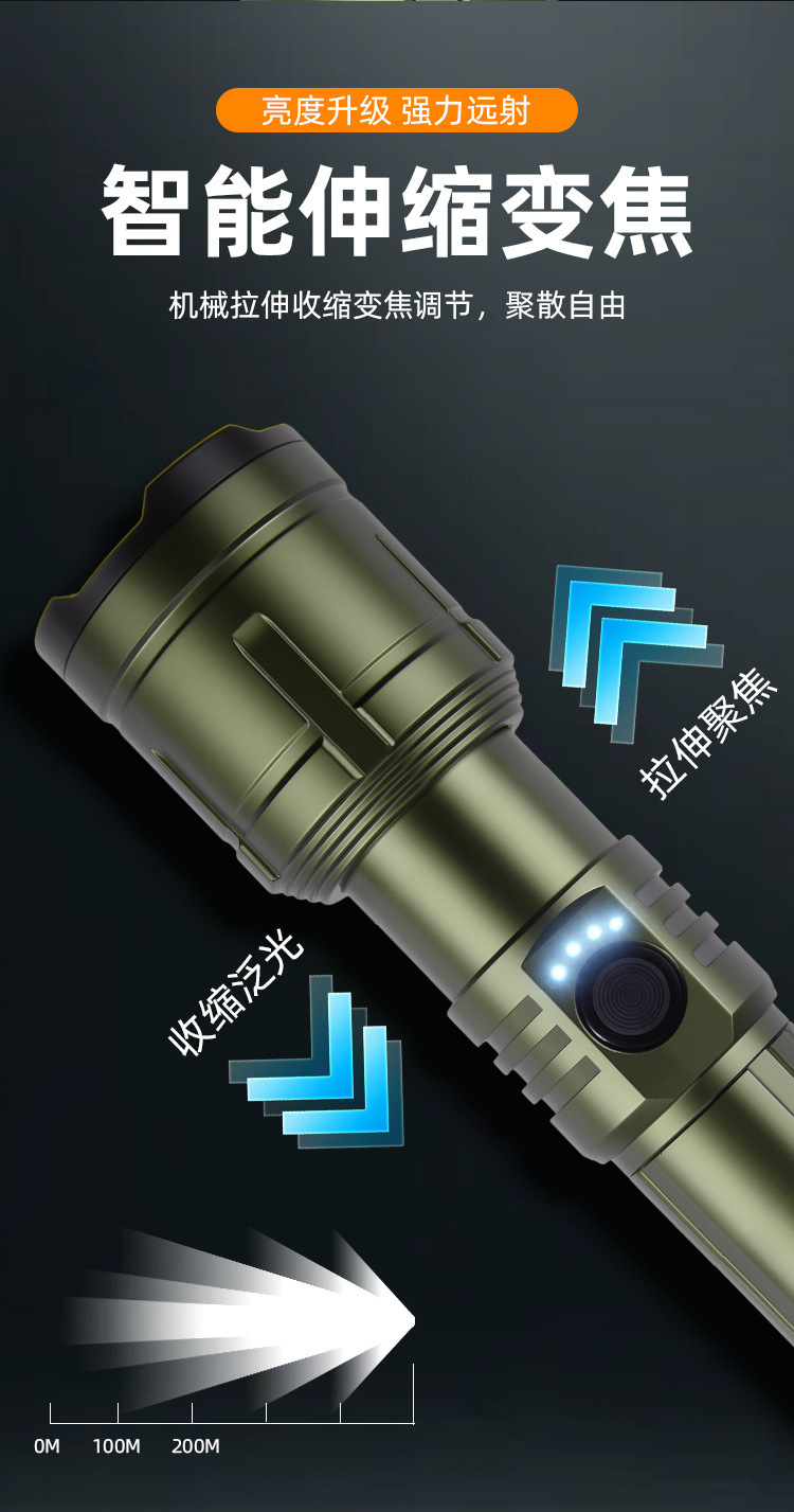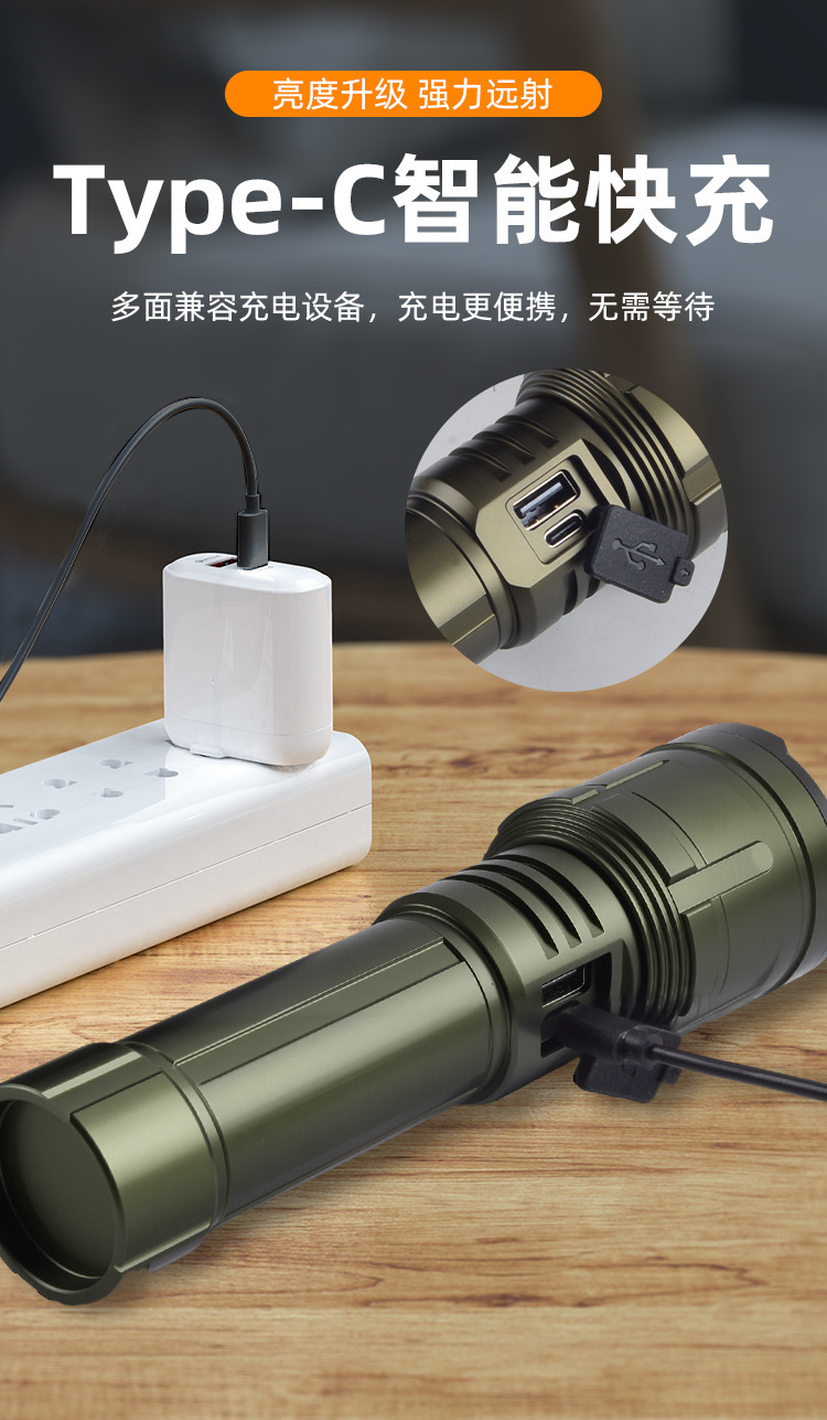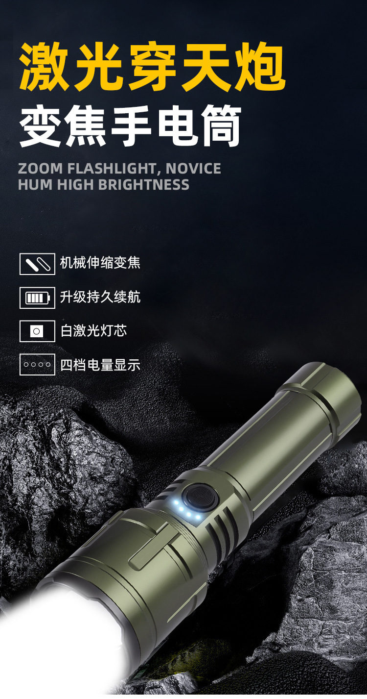 TEMU TIKTOK 국경 간 밝은 손전등 순찰 캠핑 야외 조명 백색 레이저 장거리 알루미늄 합금