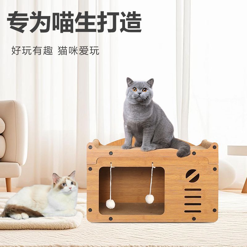 올인원 다기능 고양이 둥지, 사계절 사용 가능, 수직 골판지 고양이 집, TV, 고양이 장난감, 내구성이 뛰어난 고양이 둥지스토어 가기