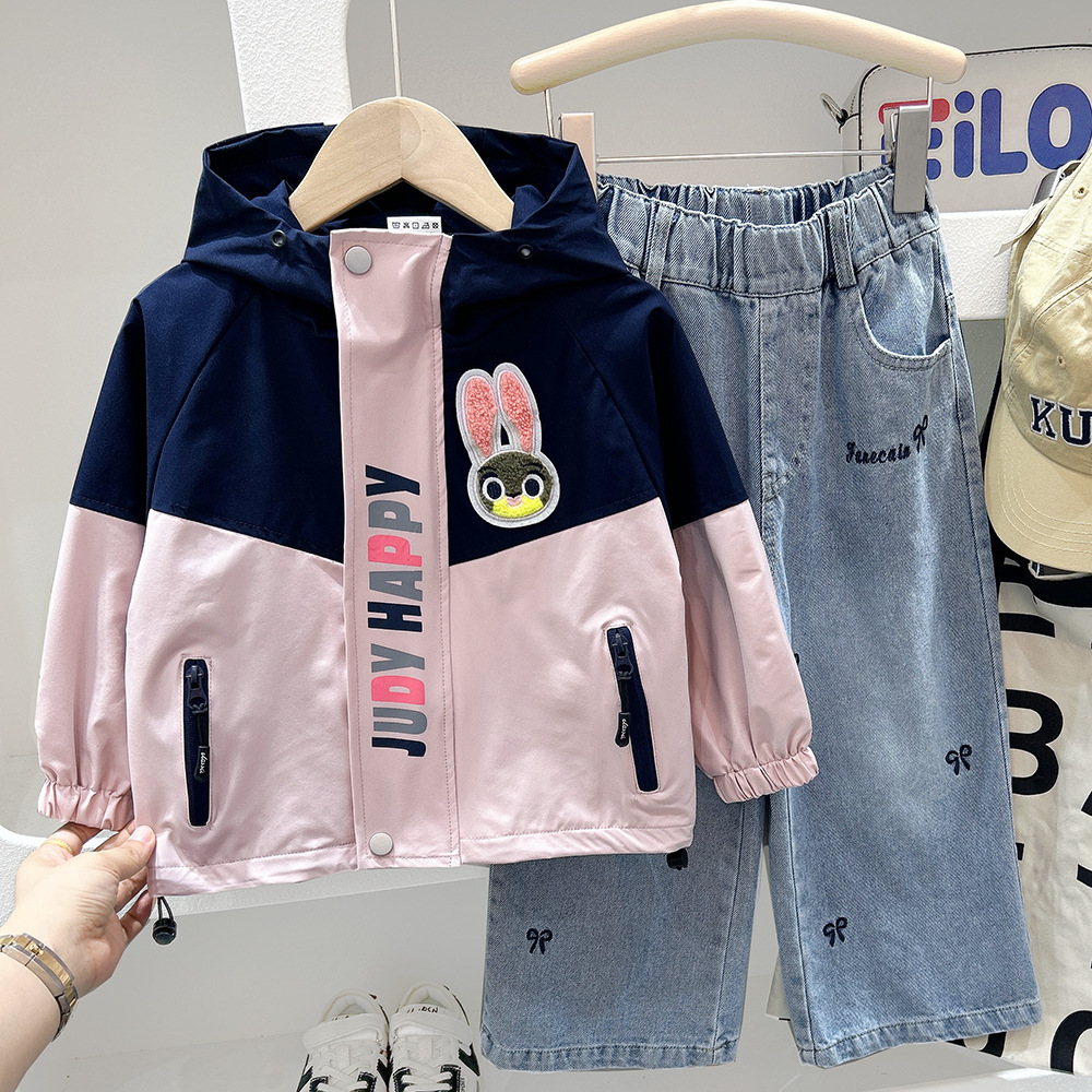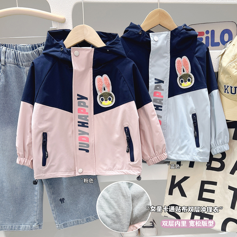 여자 가을 재킷 2025 새로운 스타일 어린이 스타일 여자 봄, 가을 재킷 후드 토끼 재킷 탑스토어 가기