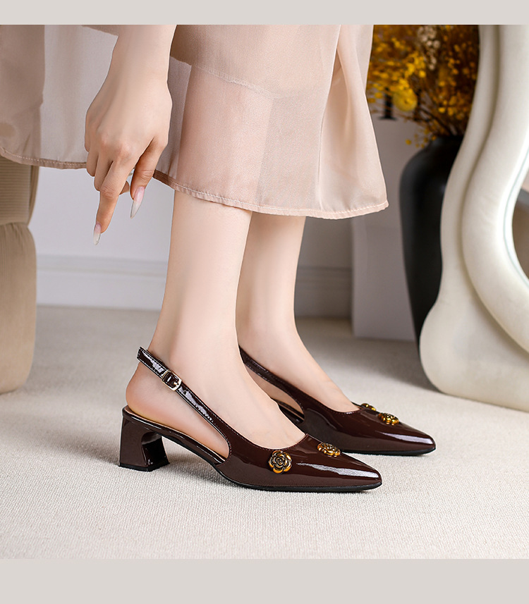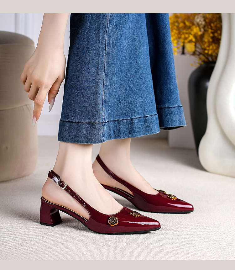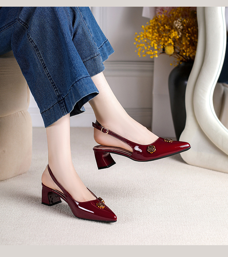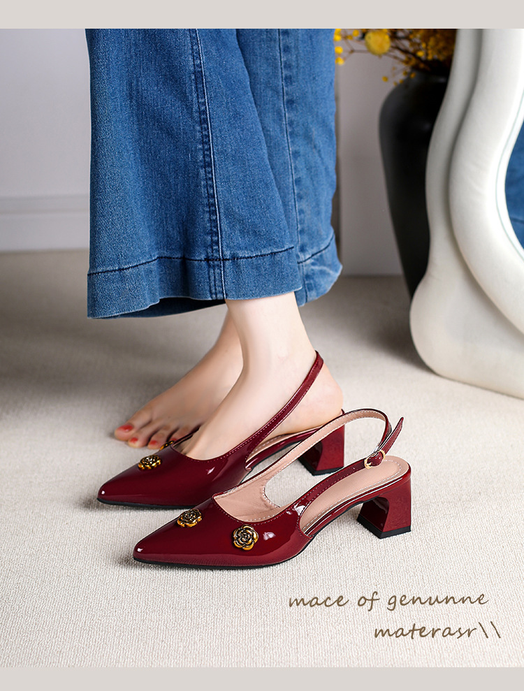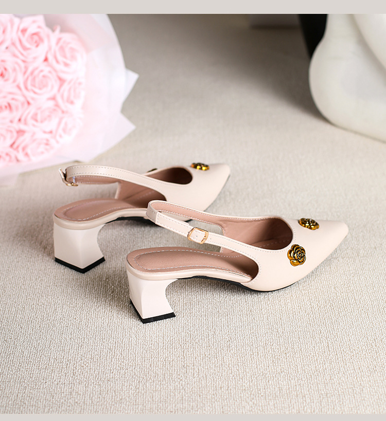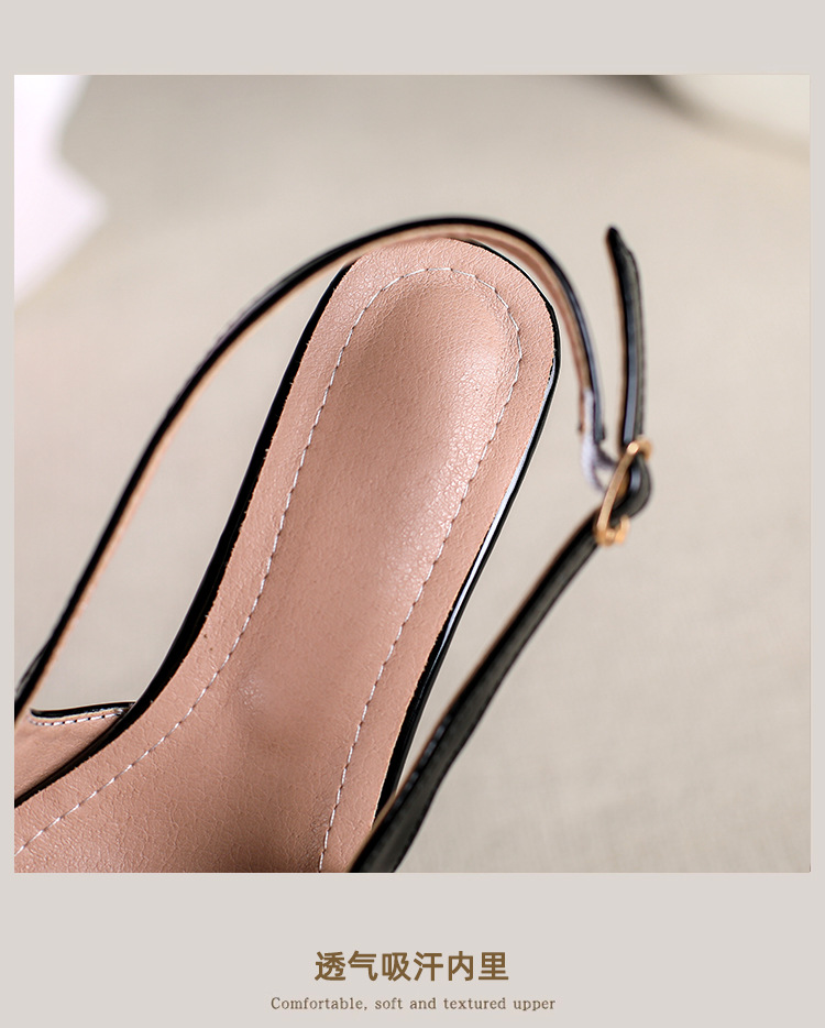 여성을위한 영국 Baotou 샌들 2025 여름 새로운 스타일 뾰족한 발가락 복고풍 백 스트랩 하이힐 여성을위한 다목적 두꺼운 굽 신발스토어 가기