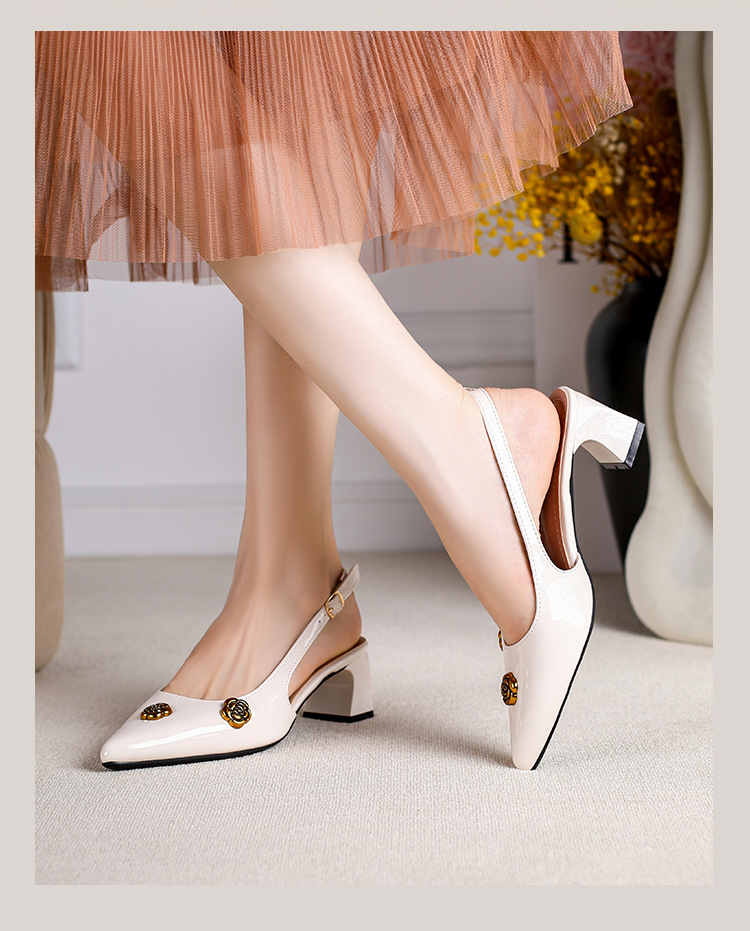 여성을위한 영국 Baotou 샌들 2025 여름 새로운 스타일 뾰족한 발가락 복고풍 백 스트랩 하이힐 여성을위한 다목적 두꺼운 굽 신발