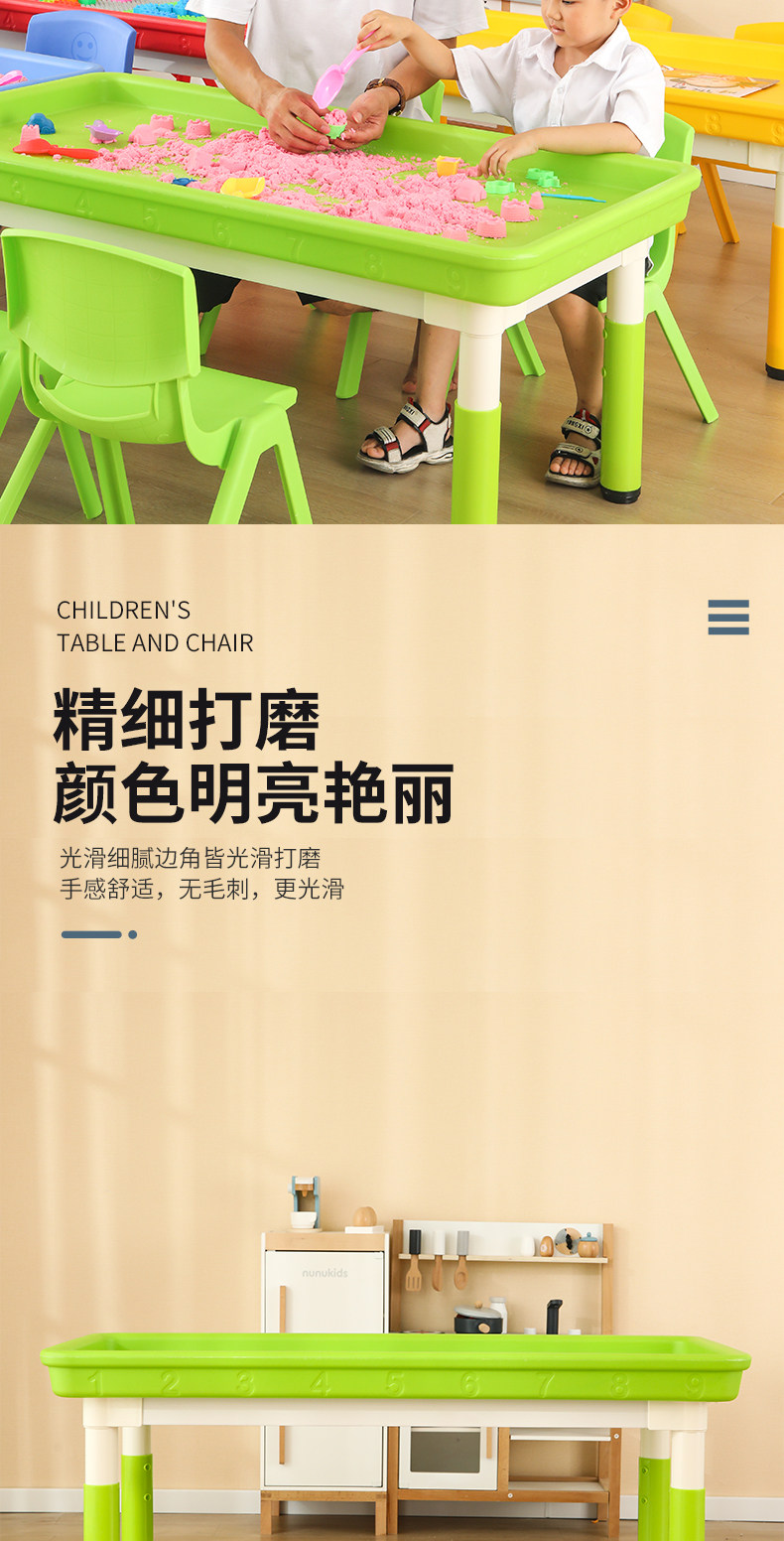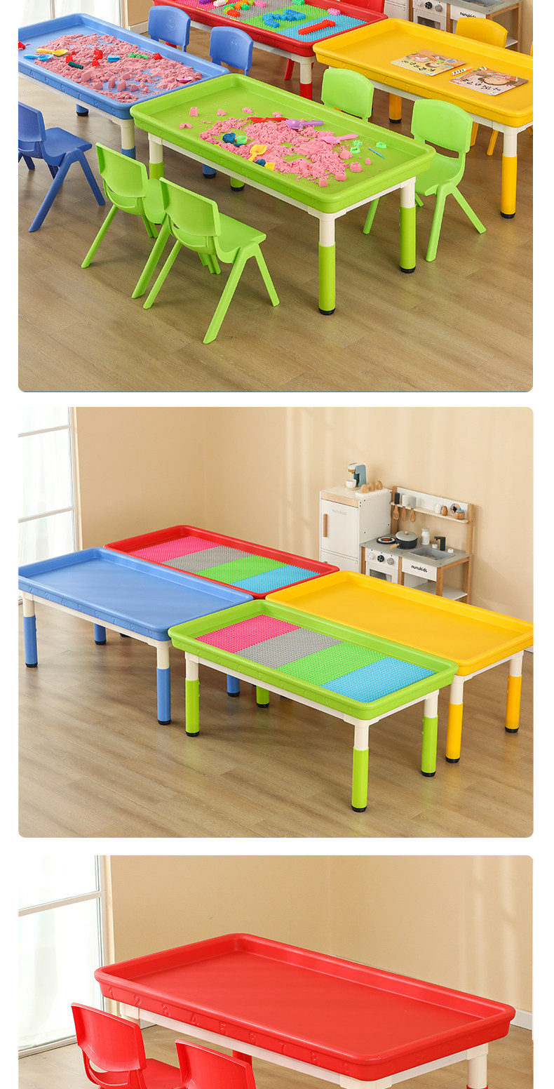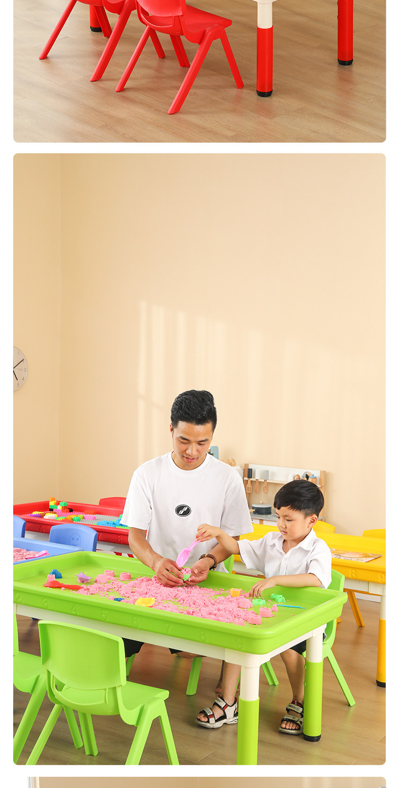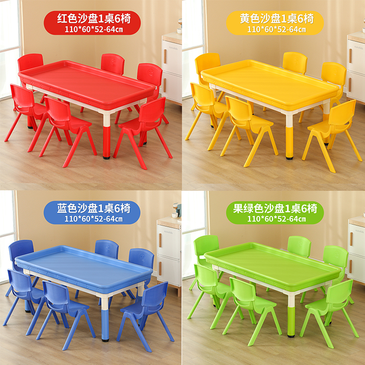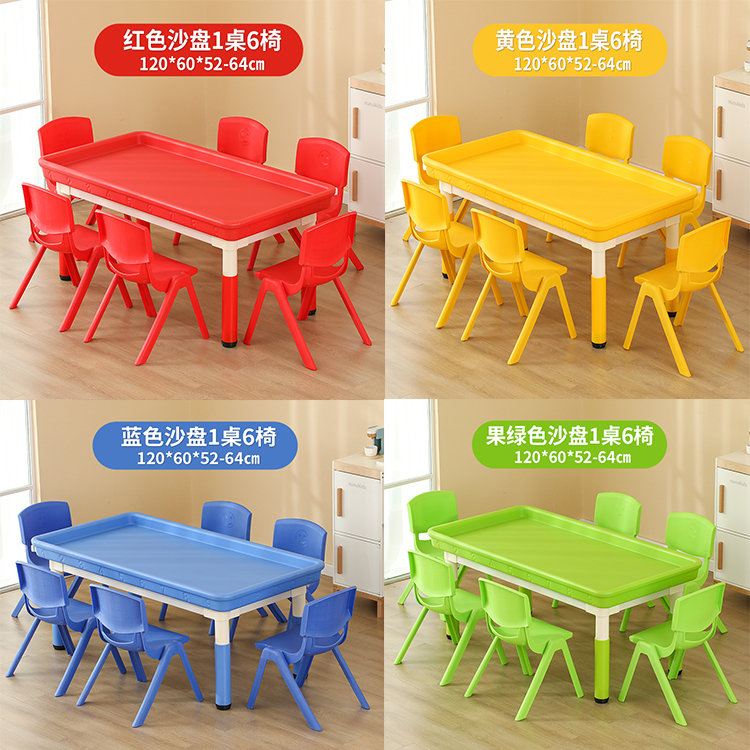 • 마카롱 리프팅 직사각형 모래 테이블, 테이블 1개, 의자 6개, 120*60cm, 색상 비고